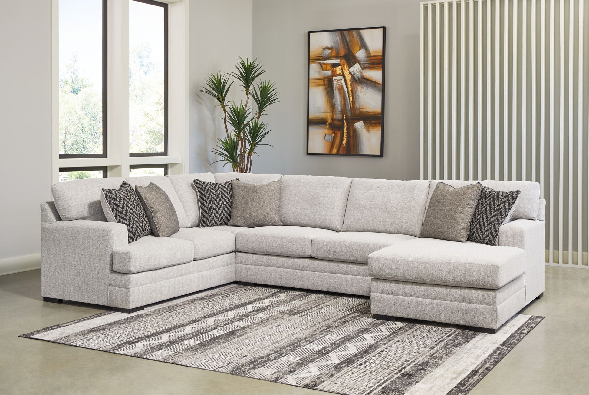 Refined design, reimagined to fit your busy lifestyle. The Abbeyline sectional with chaise impresses in high-traffic areas with its contemporary character. And you won’t need to sweat spills and messes, because the performance fabric is easy to clean.