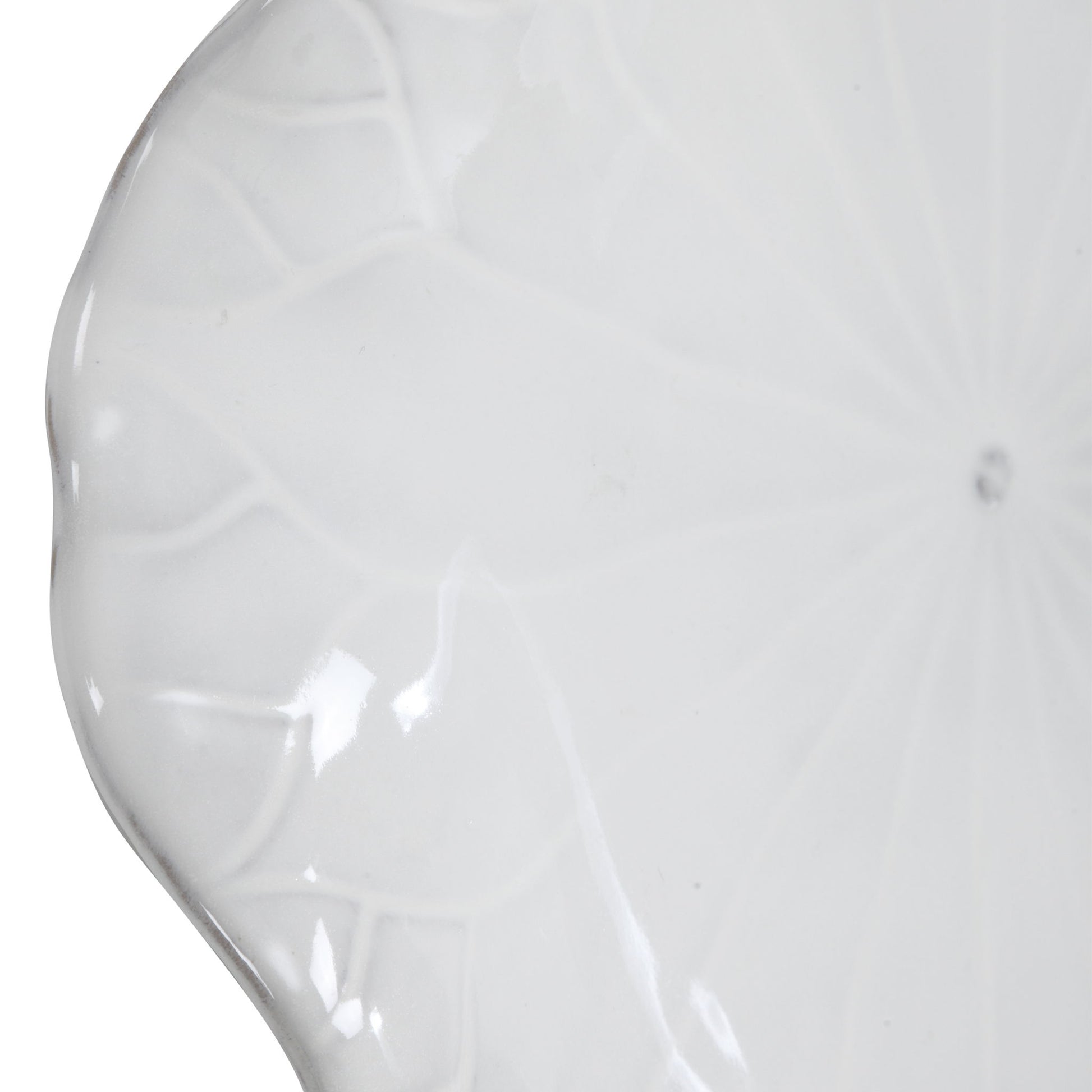 A Trio Of Ceramic Flowers With Detailed Veining, Glazed In A Fresh White Tone. May Be Hung On Wall Or Used As Tabletop Accessory. Safe For Outdoor Use, But Protection From Freezing Temperatures Is Recommended. Sizes: Sm-11x3x11, Med-15x3x15, Lg-18x4x18