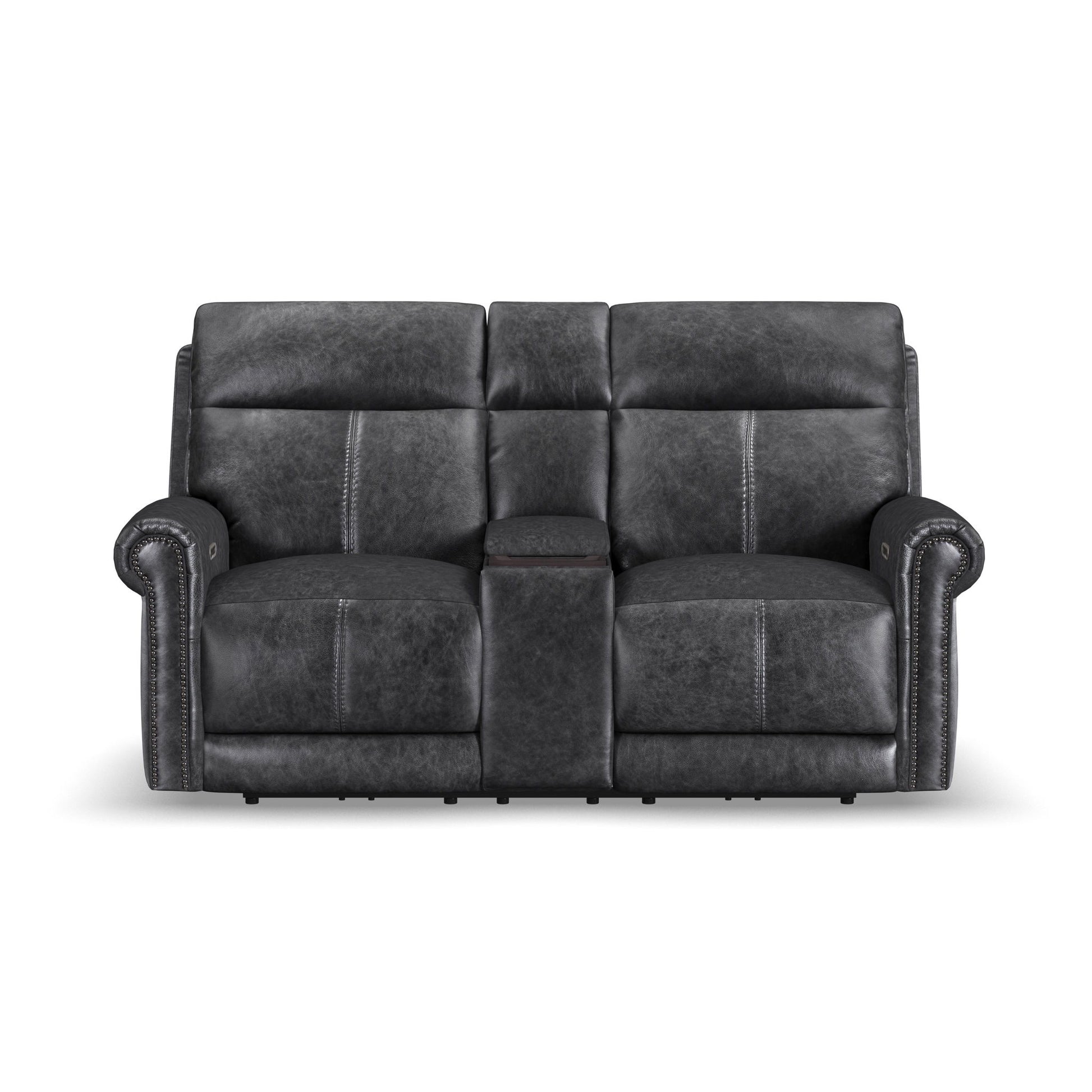 Alexander - Power Reclining Loveseat With Console, Power Headrest & Lumbar - Weathered Stone Gray