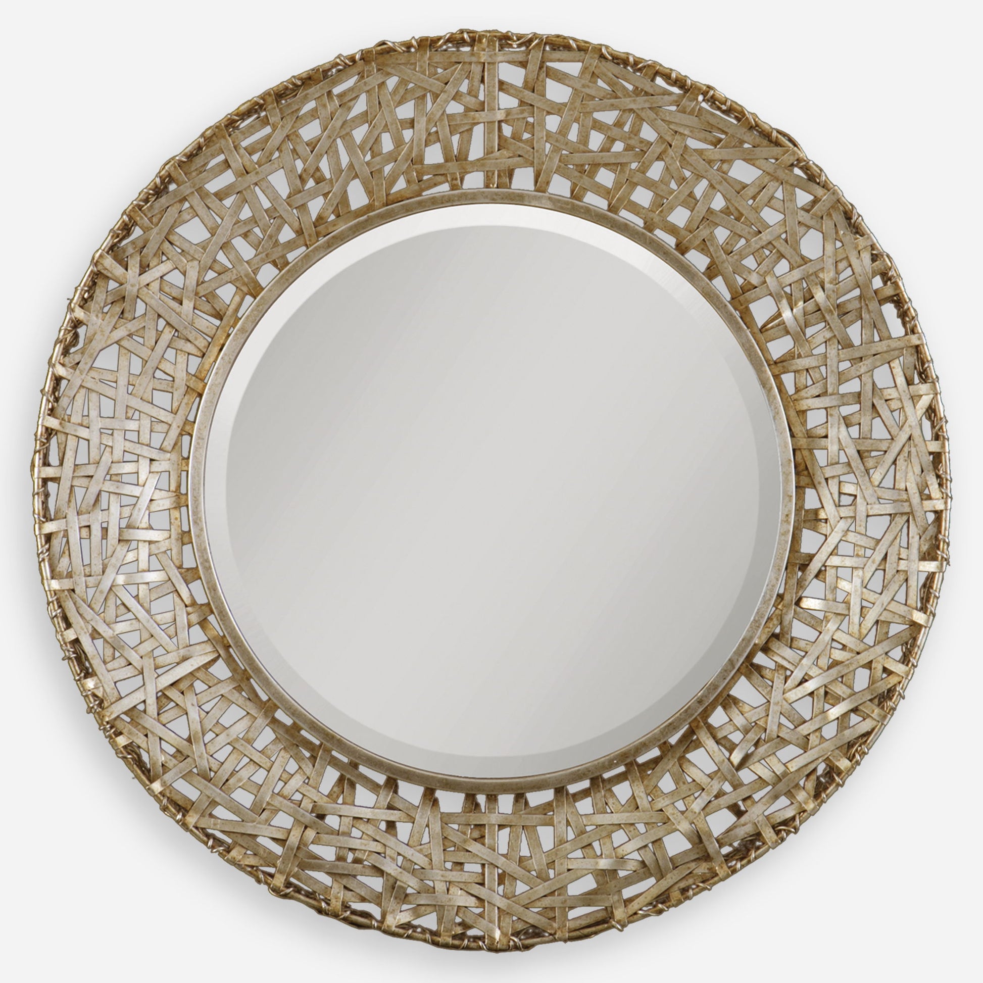 This Mirror Features A Frame Made Of Hand Forged Metal Strips Finished In Antiqued Silver Champagne With Black Dry Brushing.