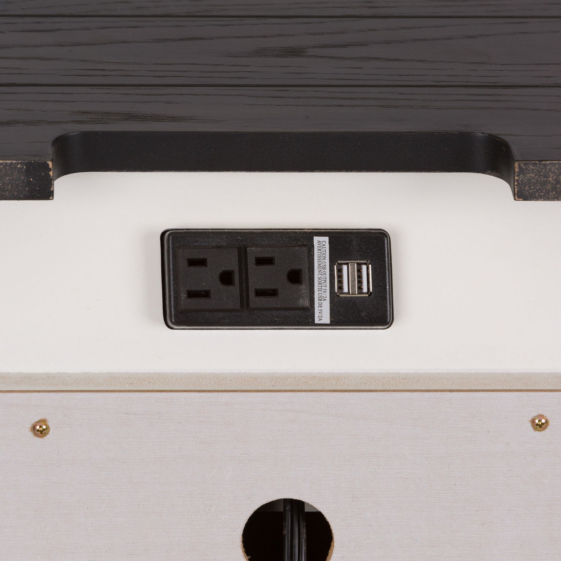 Create a classic look with a casual feel using this 3 drawer night stand. The two-toned wire brushed finish. Planked tops add a vintage vibe while the stylish tapered feet tie in to the cottage design. With today's technology in mind, users can enjoy the benefit of the incorporated charging station, featuring two USB ports and two outlets, making multi-device charging a breeze.