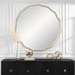 Showcasing An Impressive Scale And A Feminine Scalloped Edge, This Shaped Wood Mirror Adds Whimsical Flair To Any Design. The Mirror Is Finished In An Antiqued Gold Leaf, And Has A 1" Bevel.