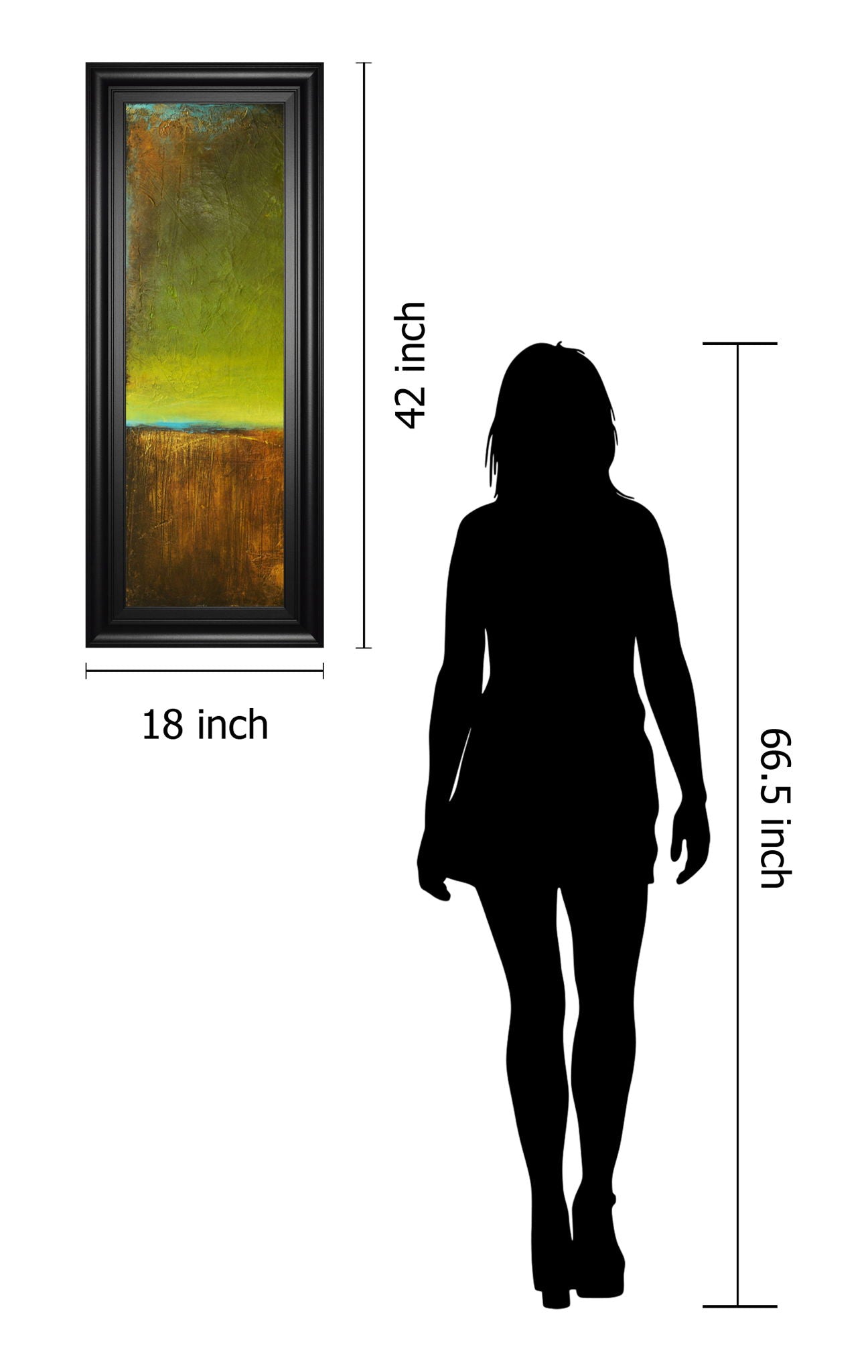 Step into the serene world of "Antigua Bay I," where textured layers of earthy browns meet vibrant greens and subtle blues, creating a captivating abstract landscape. This vertical mixed media piece is encased in a midnight aura frame that adds a refined depth, making it a perfect focal point for living rooms, offices, or bedrooms. Crafted with premium materials and protected by crystal-clear glass, it enhances the rich colors and intricate details, ready to hang and bring a sophisticated, modern touch to your space.