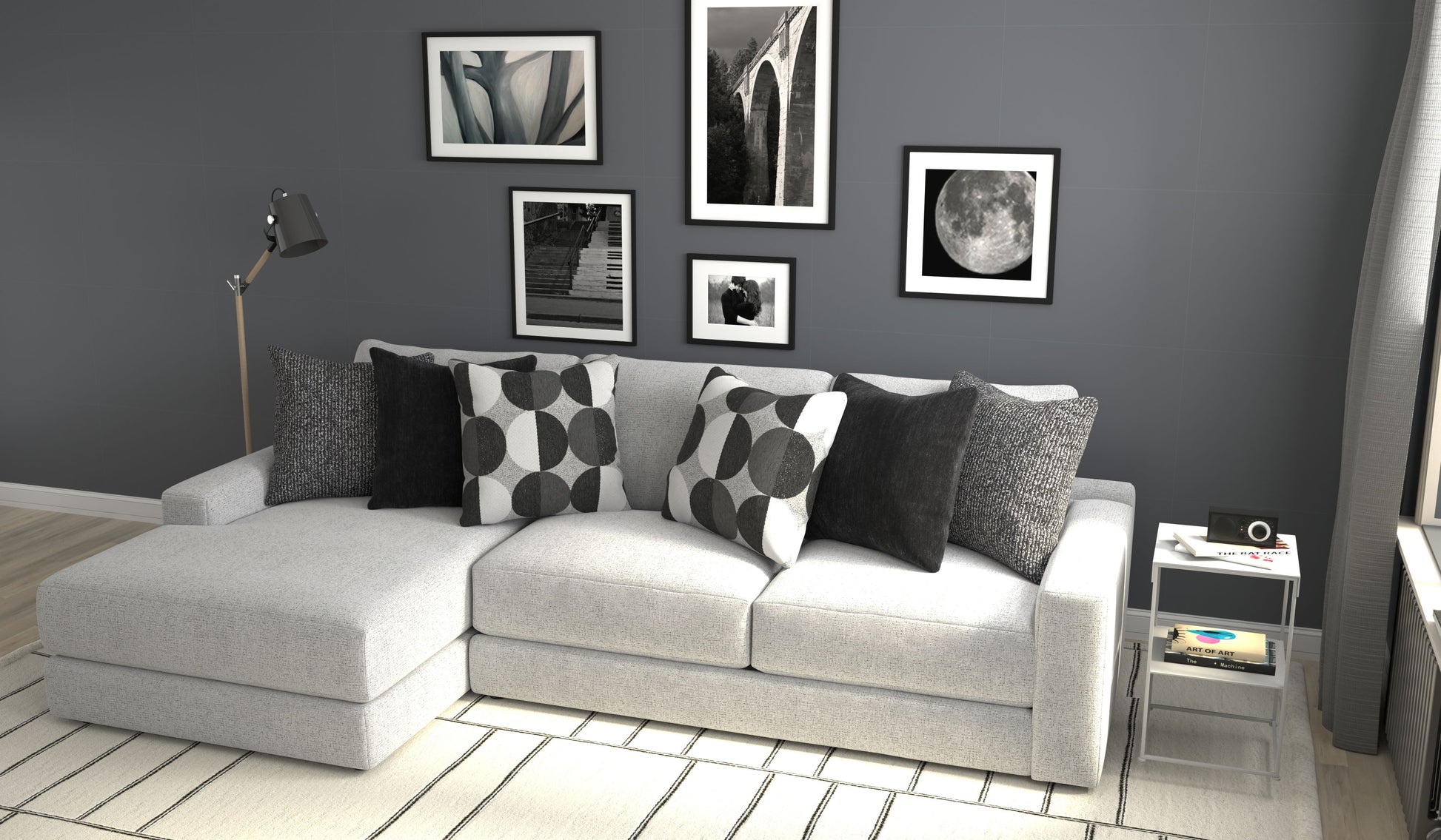 Arlo is a modern track arm design in a soft and durable chenille fabric. This large scale sectional features our deep seating Cuddler Cushion for ulitmate comfort.