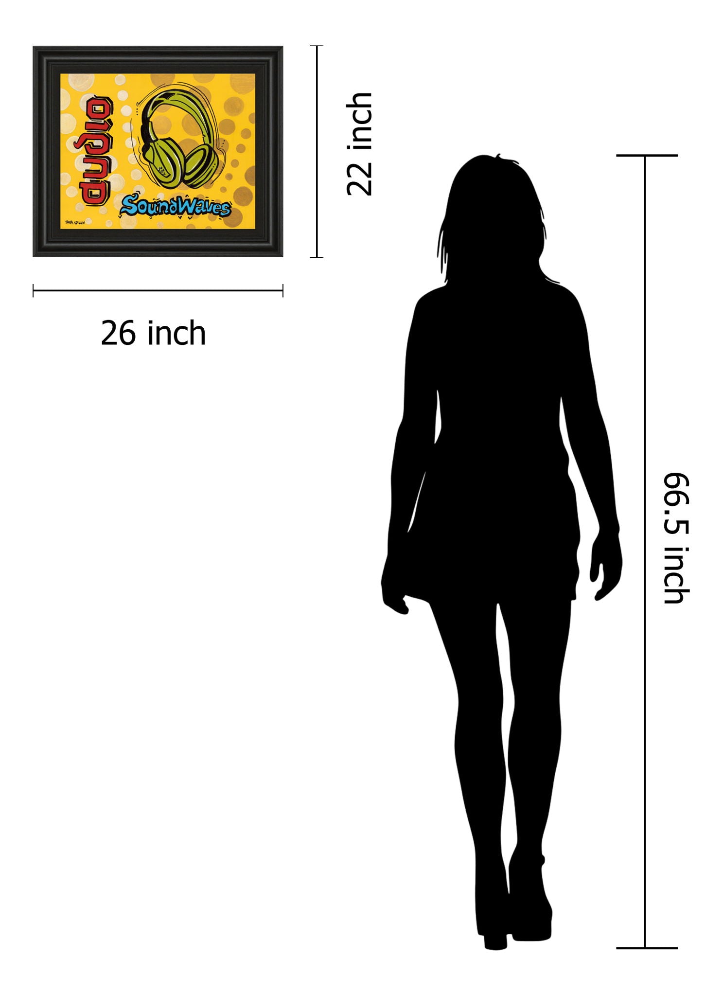Immerse yourself in the lively spirit of sound with this vibrant "Audio Vibes" framed wall art. The bold illustration of green headphones set against a bright yellow backdrop, accented by playful polka dots and dynamic typography, captures the essence of music's energy and rhythm. Encased in a sleek midnight aura frame with premium real glass, this piece not only protects but also enhances the vivid colors, making it a striking focal point for any living room, office, or music space. Ready to hang and crafted with care, it’s a perfect tribute to the power of sound and contemporary style.