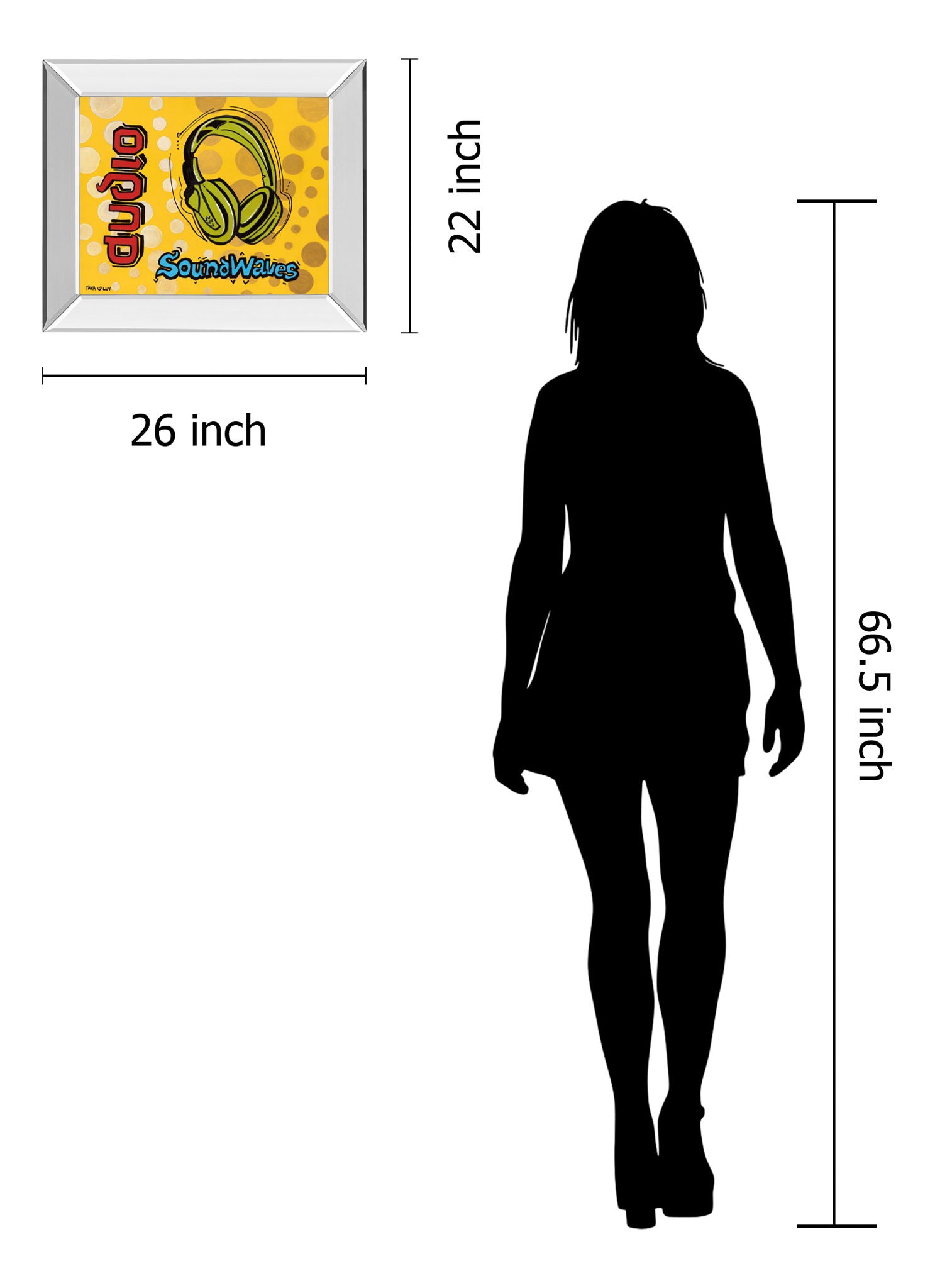 Step into a world where music and art collide with this vibrant "Audio" framed wall art. The bold graphic of green headphones pulses against a lively yellow backdrop, dotted with playful circles that add a dynamic pop-art flair. Encased in a sleek mirrored frame, the piece reflects light and depth, enhancing its contemporary charm. Crafted with premium real glass, it preserves the vivid colors and intricate details, ensuring a crystal-clear view. Perfectly sized for living rooms, offices, or bedrooms, this artwork brings a stylish and energetic focal point to any space, inviting you to feel the rhythm and energy of soundwaves every day.