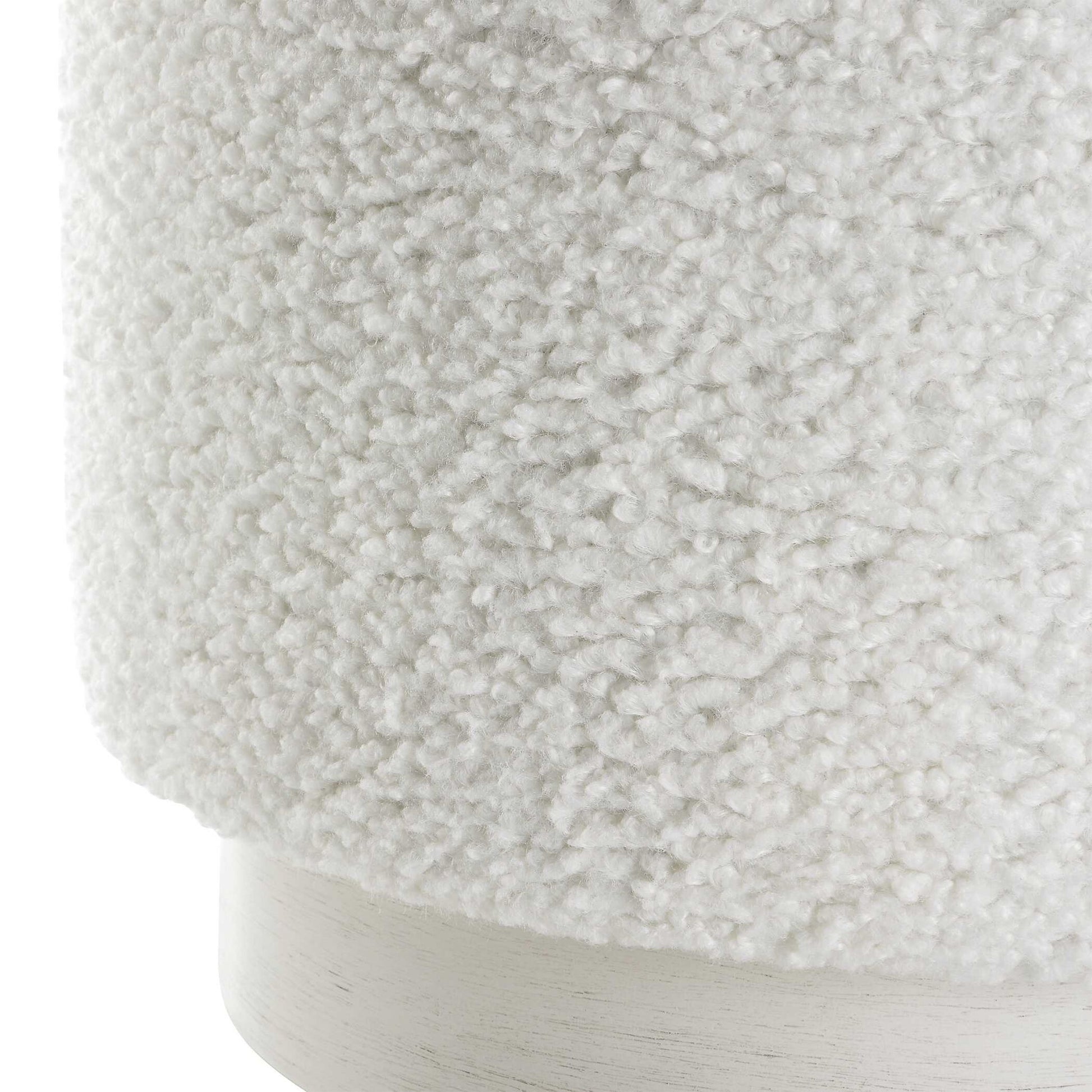 This Plush Ottoman Is Covered In White Faux Shearling Paired With A Wire Brushed Oak Base In A Modern White Finish. Versatile And Stylish, This Piece Can Be Used As A Seat Or Footrest, Grouped Together Or As A Singular Accent Piece.
