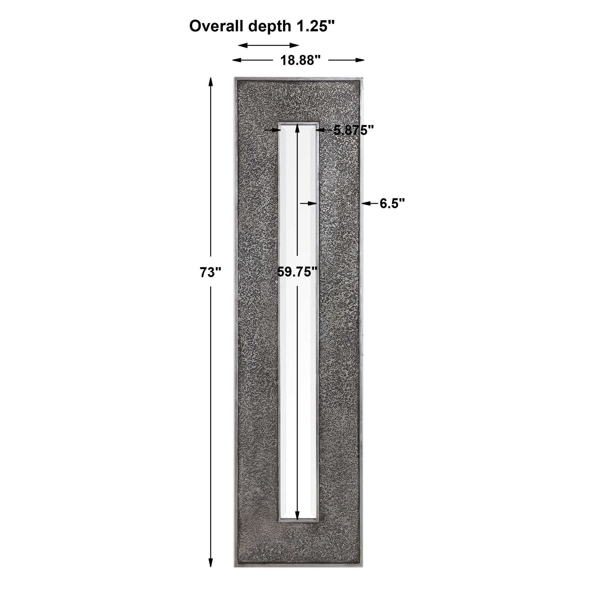 This Rectangular Mirror Features A Heavily Textured Surface Finished In A Metallic Silver Leaf With A Heavy Charcoal Wash Over A Solid Wood Construction. This Contemporary Design Boasts A Great Profile For Showing Individually Or Multiple For A Bold Statement. The Mirror Is Beveled And May Be Hung Horizontal Or Vertical.