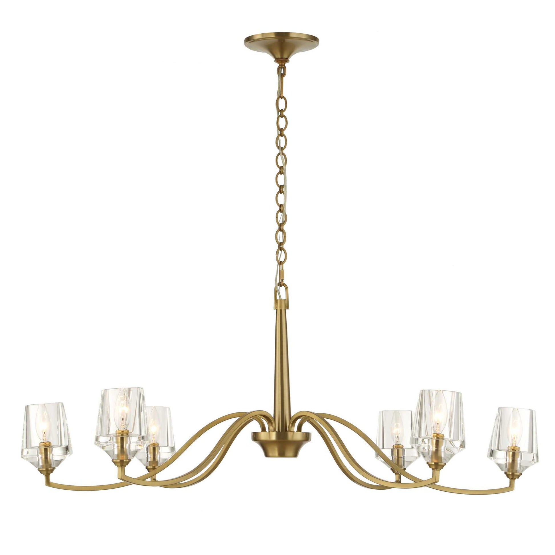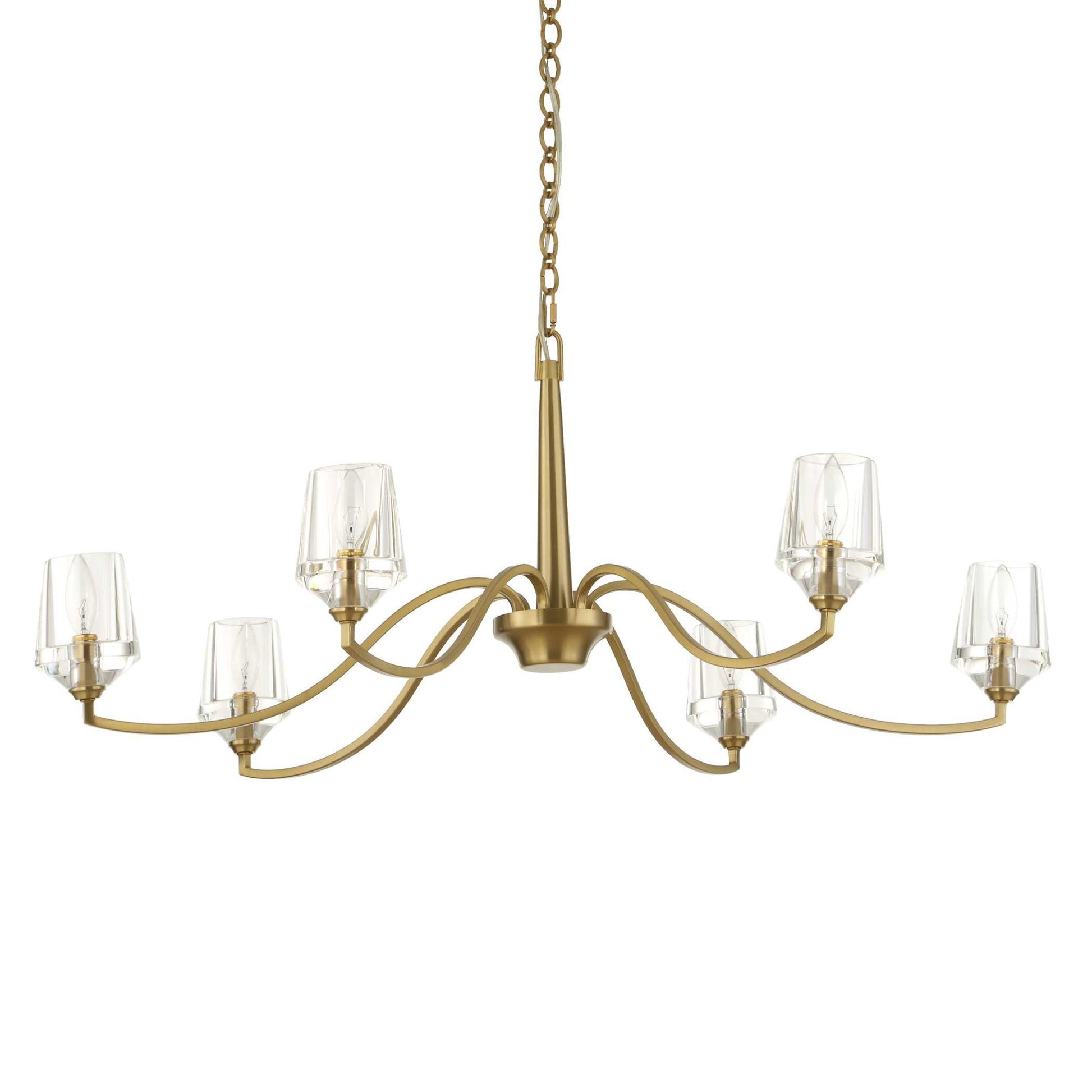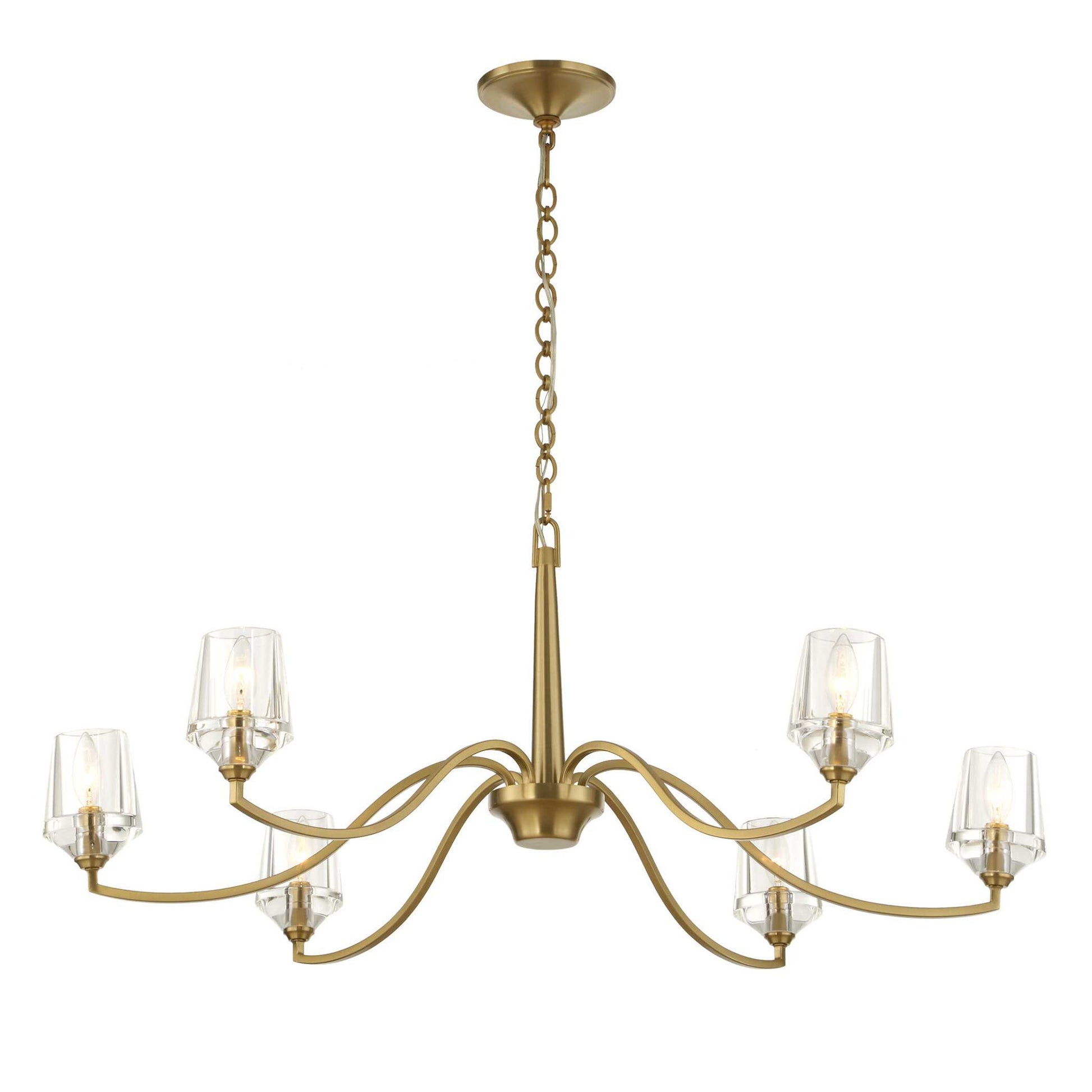Sparkling Modern Elegance Best Describes The Modern Crystal Shades On This Sleek Oversized 6 Lt. Chandelier In A Warm Natural Brass Finish. 6-60 Watt Max Candelabra Sockets. Bulbs Not Included. Supplied With 20' Wire, 7' Specialty Decorative Chain For Adjustable Installation.