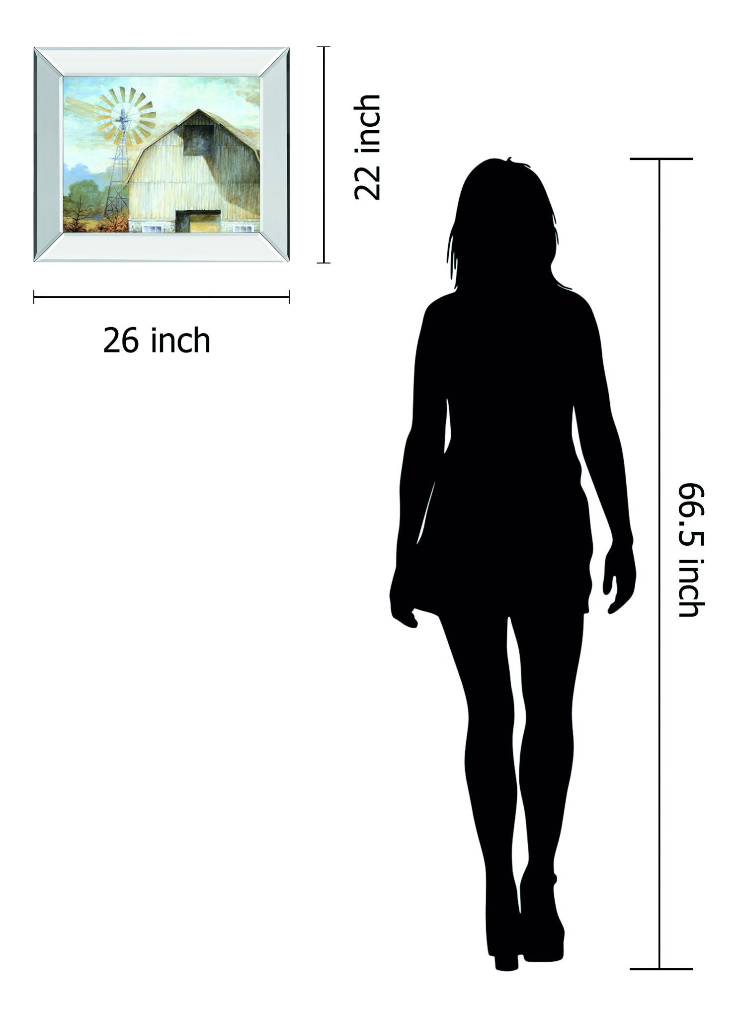 Step into a peaceful countryside scene with this beautifully framed wall art that captures the quiet charm of rural life. The artwork features a classic barn and windmill under a soft, muted sky, evoking feelings of nostalgia and tranquility. Encased in a sleek 2.5-inch mirrored frame, the piece gains a modern reflective quality that enhances its depth and elegance. Protected by premium real glass, the vibrant colors and intricate details remain vivid for years to come. Perfectly suited for living rooms, offices, or hallways, this transitional style artwork blends contemporary sophistication with warm country appeal, ready to hang and crafted with expert care.
