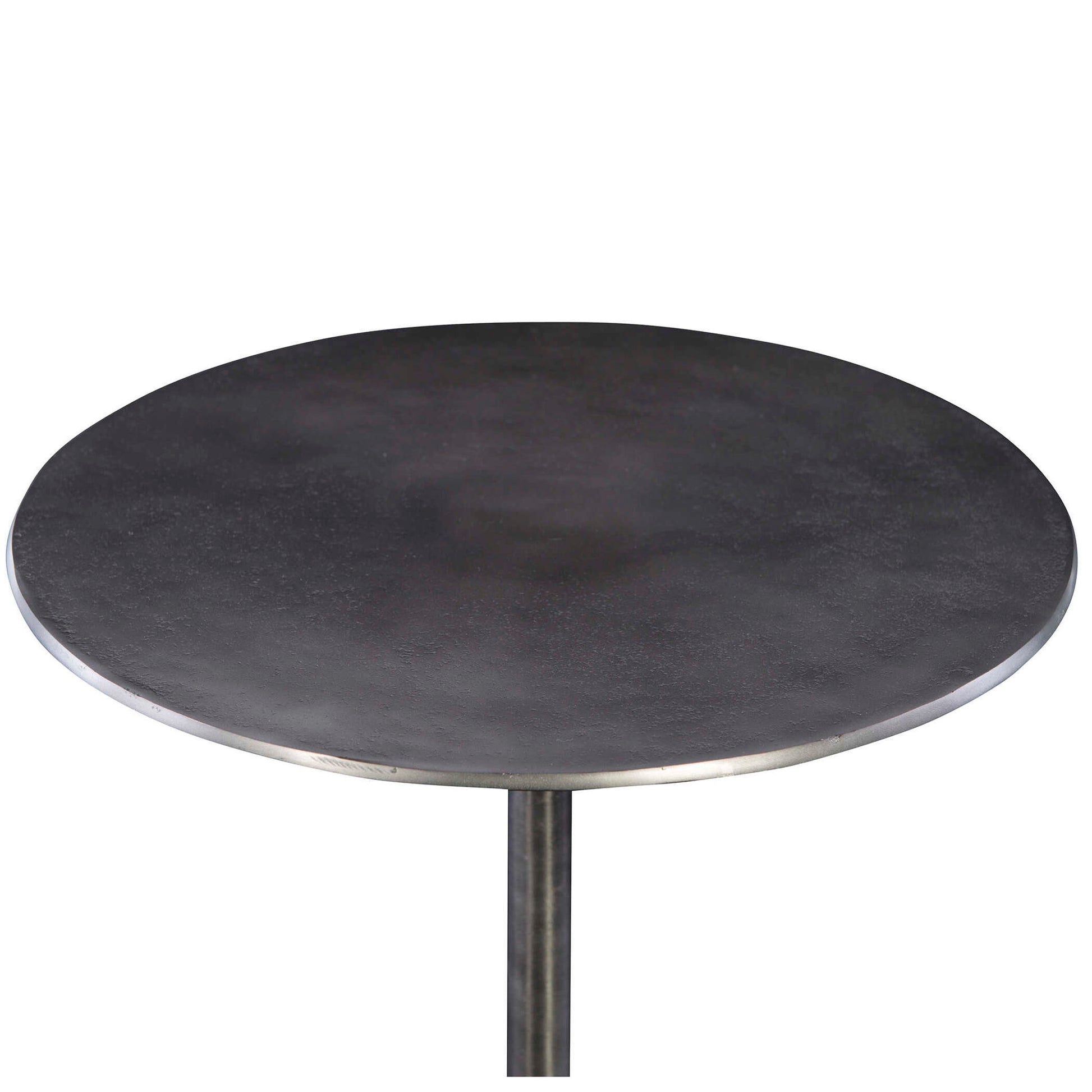 Showcasing Industrial Styling, This Handcrafted Accent Table Features An Solid Cast Aluminum Construction With A Tripod Base Finished In Antique Nickel.
