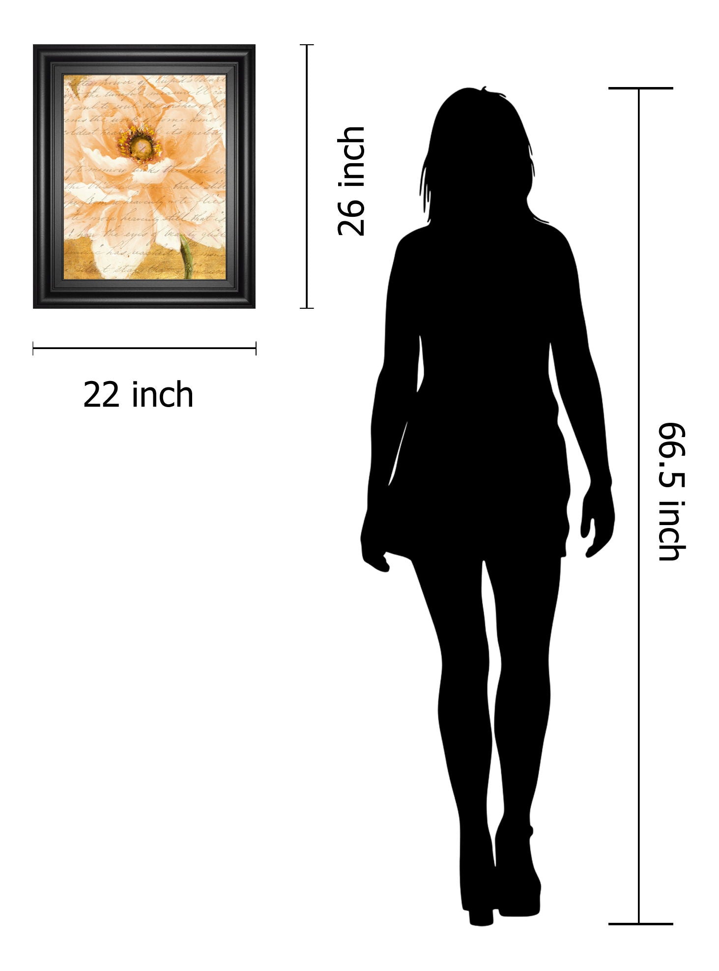 This exquisite piece showcases the gentle beauty of cream and peach peonies, layered with delicate script that evokes a sense of vintage romance. Set against a warm golden backdrop and encased in a sleek midnight aura frame, it brings a timeless botanical elegance to any living room, bedroom, or office. Crafted with premium materials and protected by real glass, this framed wall art blends softness and sophistication, inviting nature's grace to elevate your space with enduring charm.