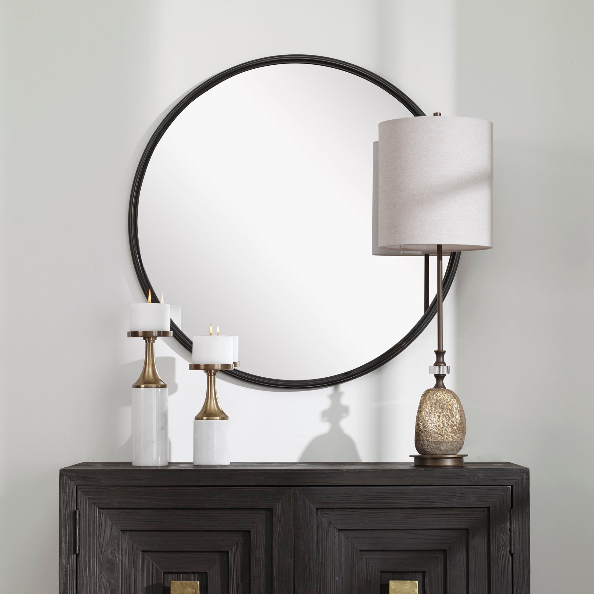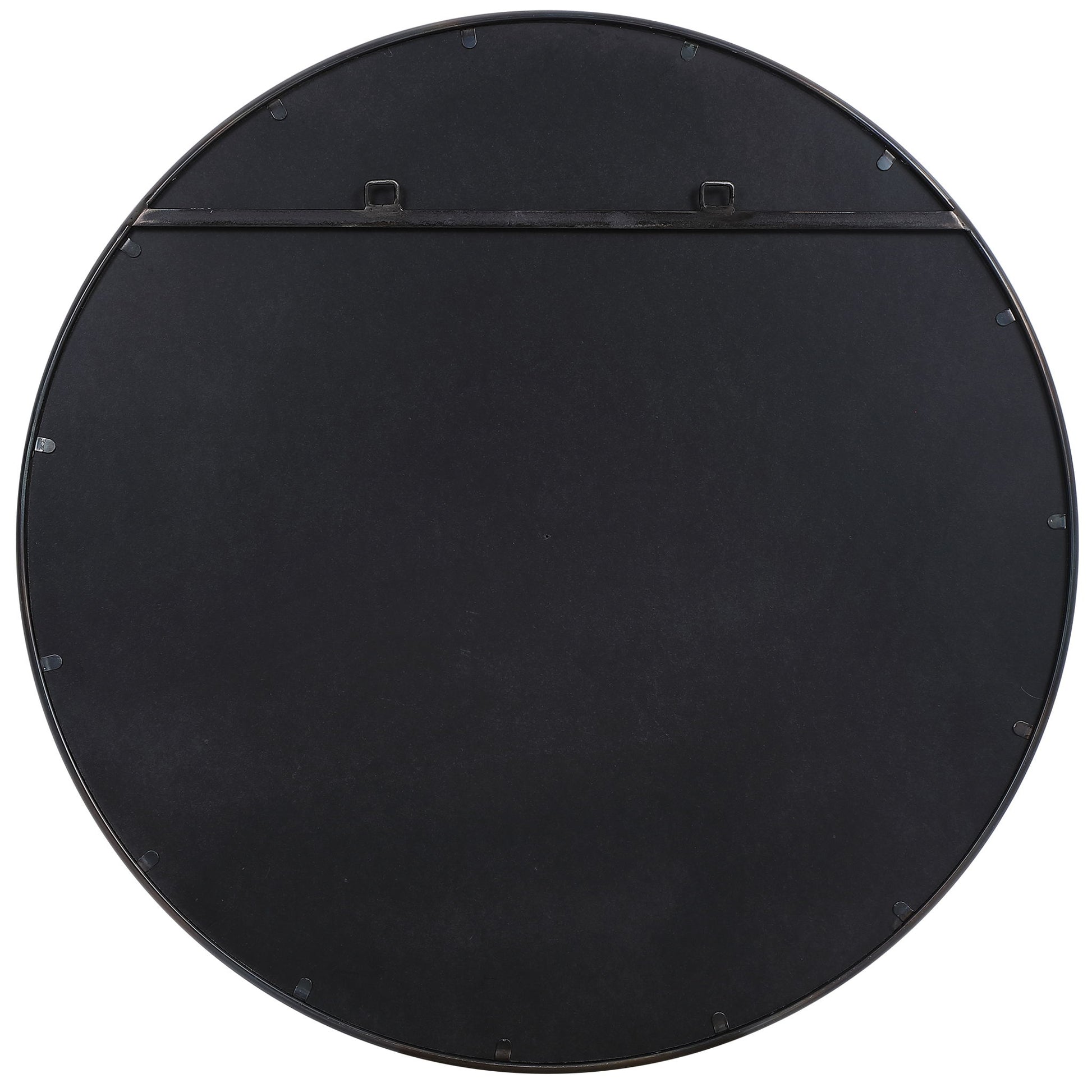 This Sophisticated Round Mirror Showcases A Solid Iron Frame With A Raised Rounded Edge Finished In An Aged Black. The Simplicity Of The Design Enables Easy Placement In An Array Of Styled Spaces.