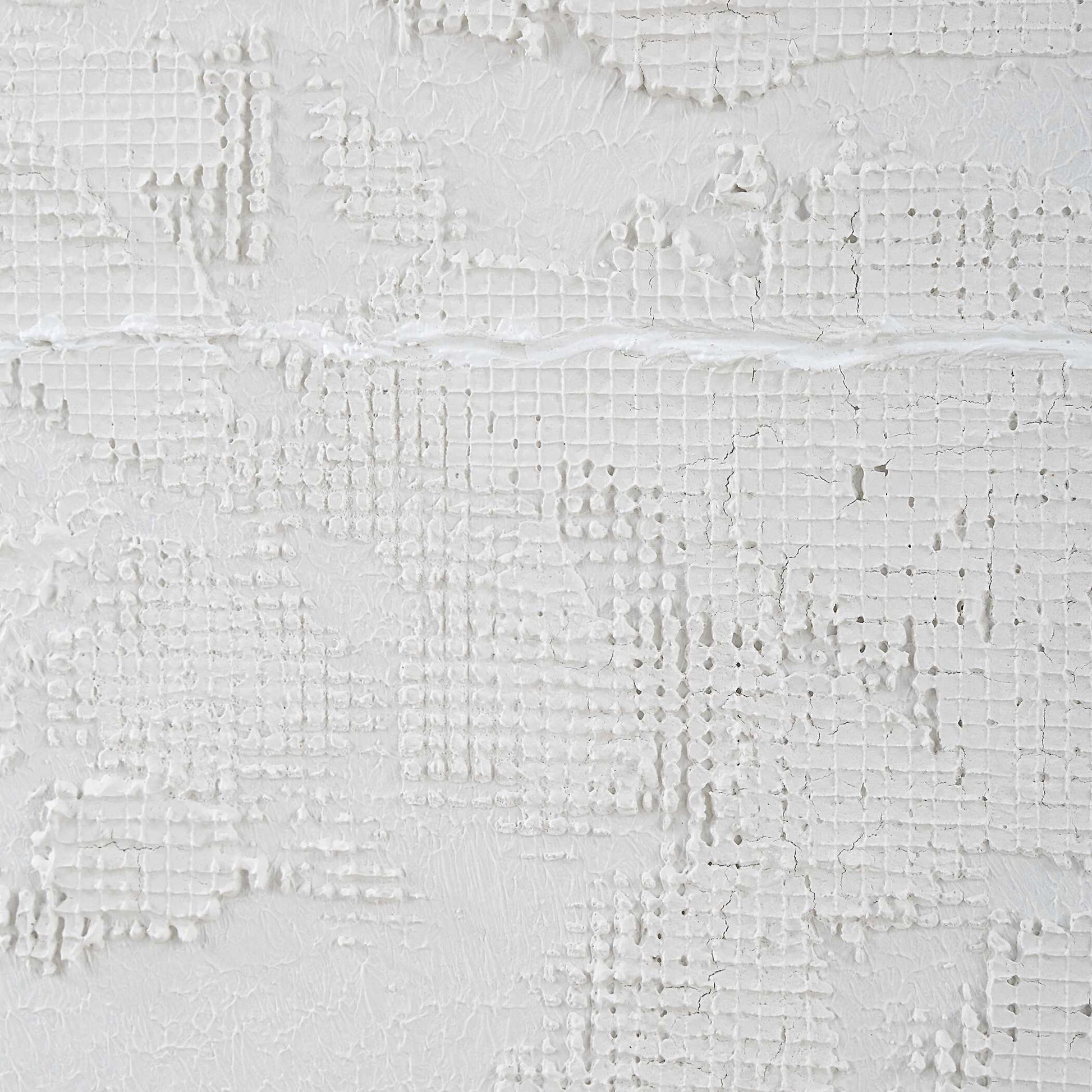 Below The Surface Hand Painted Canvas Speaks Volumes With Its All-white Palette And Intriguing Heavy Texture. A Slim, Black Gallery Frame Completes The Artwork. Due To The Handcrafted Nature Of This Artwork, Each Piece May Have Subtle Differences.