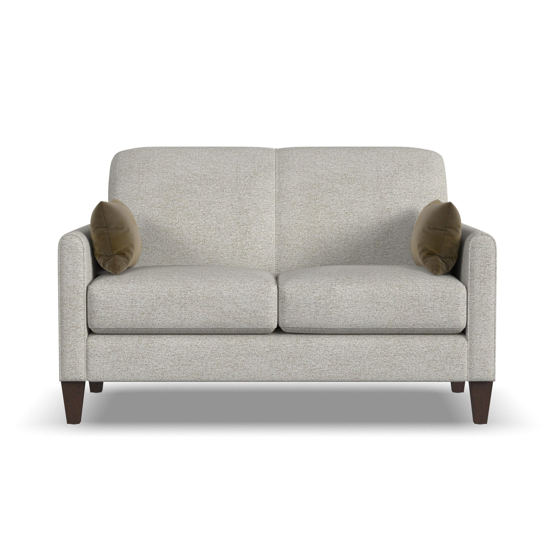 Add a touch of cosmopolitan allure to your living space with the Bond loveseat. Its sophisticated mid-century style delivers clean lines with a structured tight-back design and refined welt trim. Mailbox-style arms soften the silhouette, while lumbar accent pillows add style. Square tapered legs, available in three finishes, and the ability to upholster in your choice of fabrics ensures the perfect look.