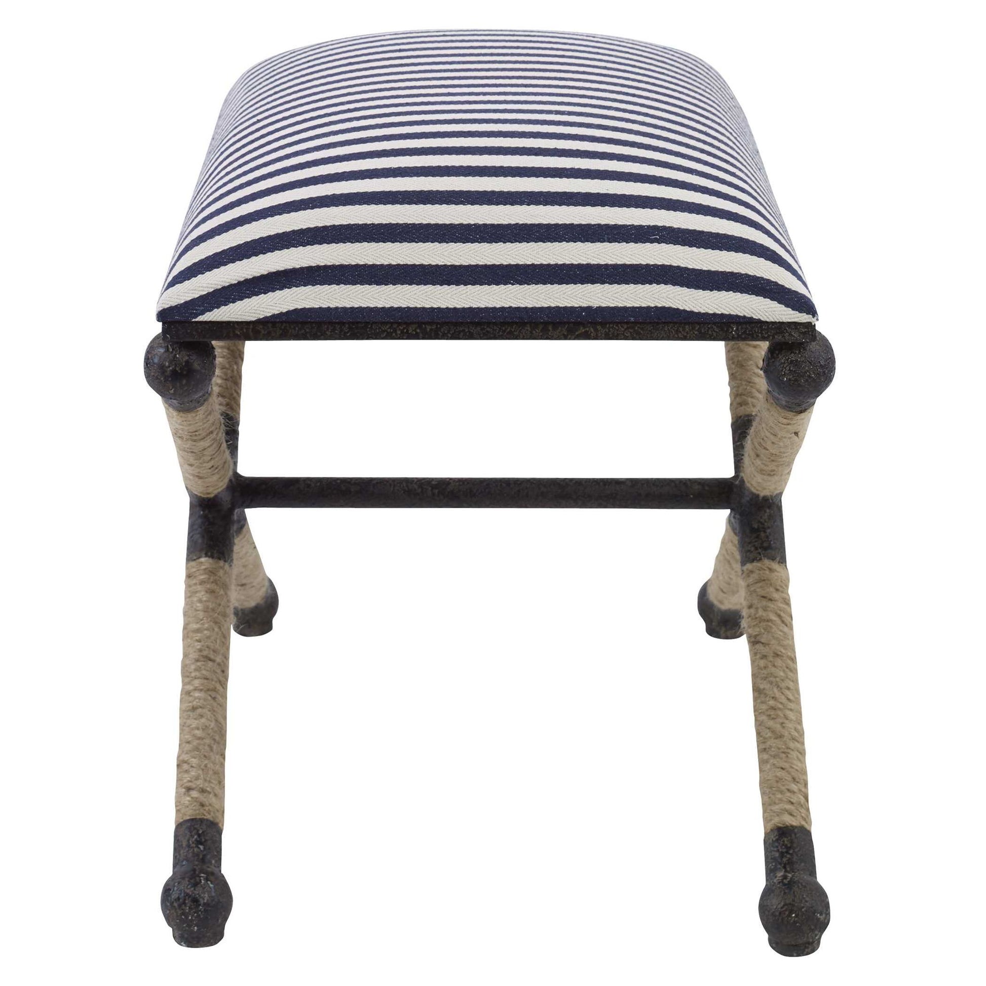 - Rustic Iron Frame With A Nautical Touch, Wrapped In Natural Fiber Rope Accents. Cushioned Top Is A Sturdy, Sailor-striped Cotton In Crisp Navy And Cream.