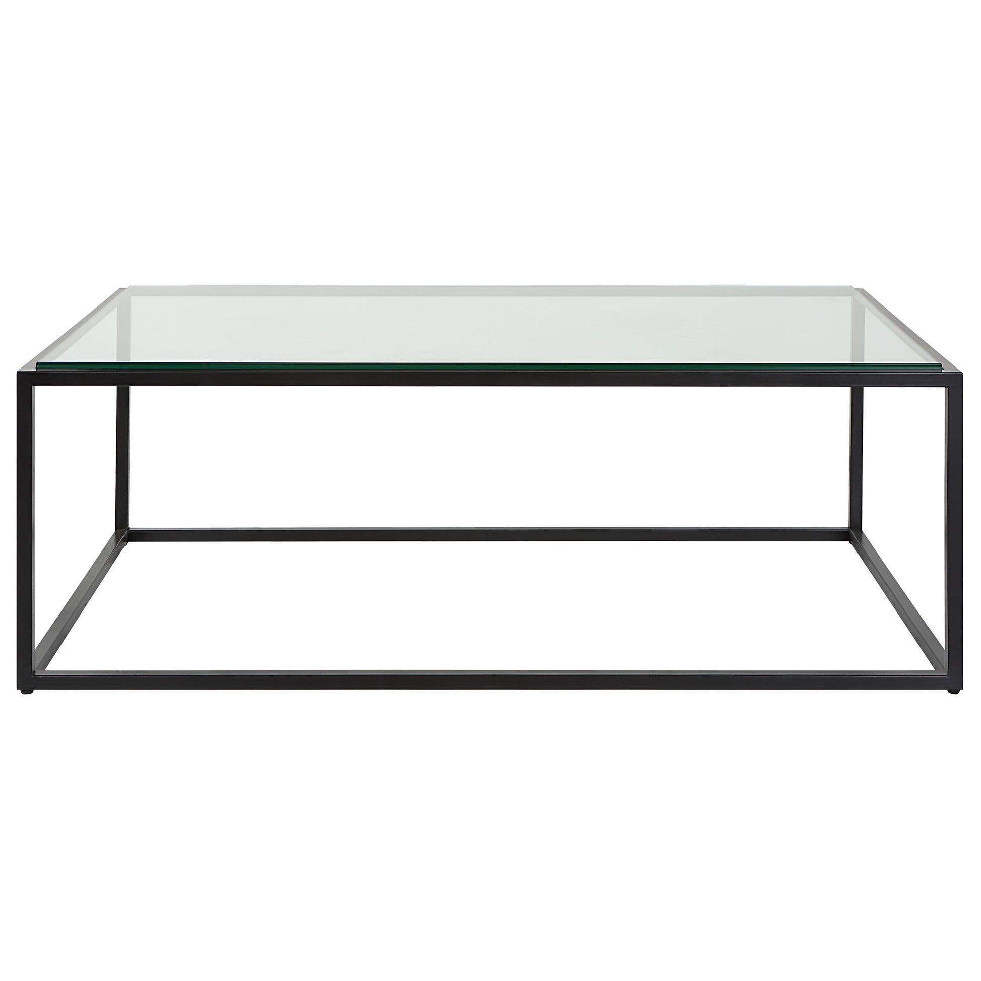A Complement To Virtually Any Style, This Modern Coffee Table Sports A Streamline Iron Frame Finished In Satin Black Paired With An Inset Tempered Glass Top.