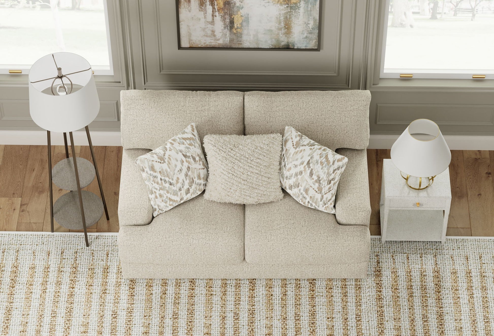 Brett features the ultimate comfort of our Cuddler Cushion and offers a mix of toss pillows in a variety of colors and textures - including a luxurious "fil coup��" (or "cut threads") treatment. This stationary sofa group is available in your choice of two colors: Lotus or Honey.