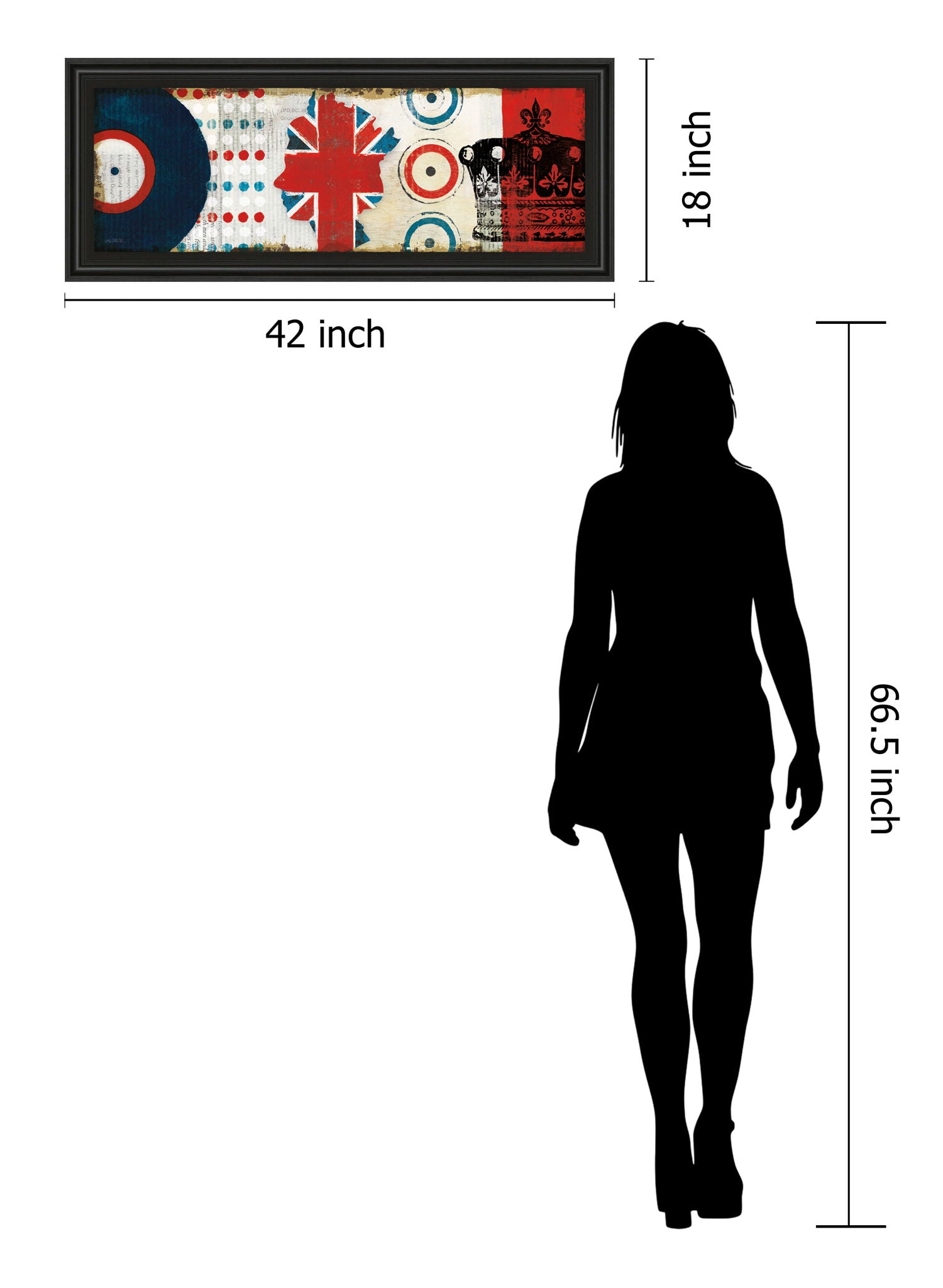 Step into the vibrant world of music history with this captivating contemporary graphic art piece. Featuring a bold silhouette adorned with the Union Jack, surrounded by vivid record and crown motifs, it channels the spirit of the legendary British Invasion era. The midnight aura frame adds a touch of elegance and depth, while premium real glass safeguards the artwork and enhances its rich colors. Perfectly suited for living rooms, offices, or entertainment spaces, this ready-to-hang framed wall art offers a stylish homage to cultural revolution and timeless craftsmanship.