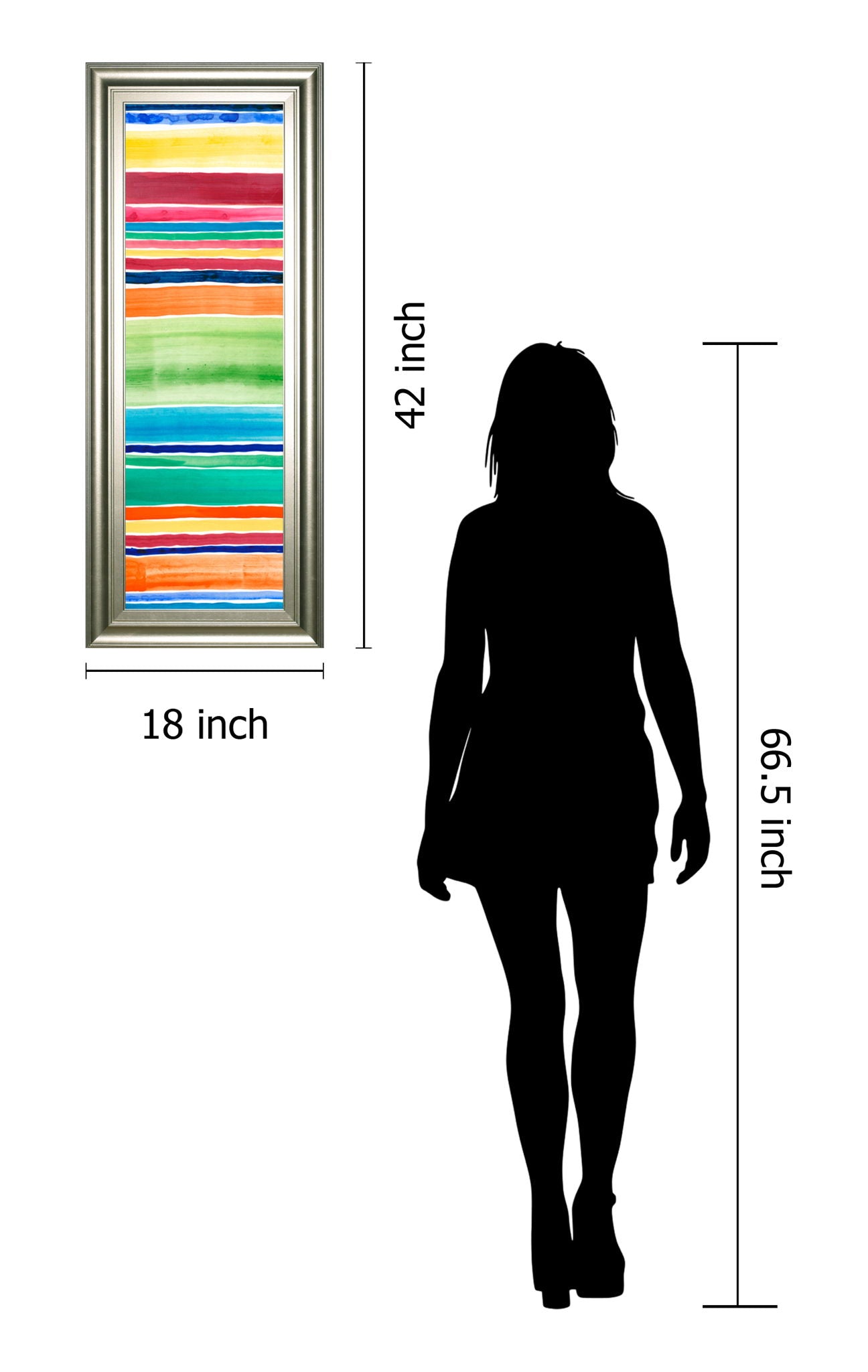 Brighten any space with the lively energy of this vibrant striped wall art. Featuring a harmonious blend of bold horizontal bands in blues, greens, reds, oranges, yellows, and pinks, this piece captures the essence of playful modern design. The silver frame adds a sleek, polished touch, perfectly complementing the vivid colors and making it a standout addition to living rooms, offices, or hallways. Ready to hang and crafted with care, this artwork invites a dynamic rhythm and cheerful spirit into your home or workspace.