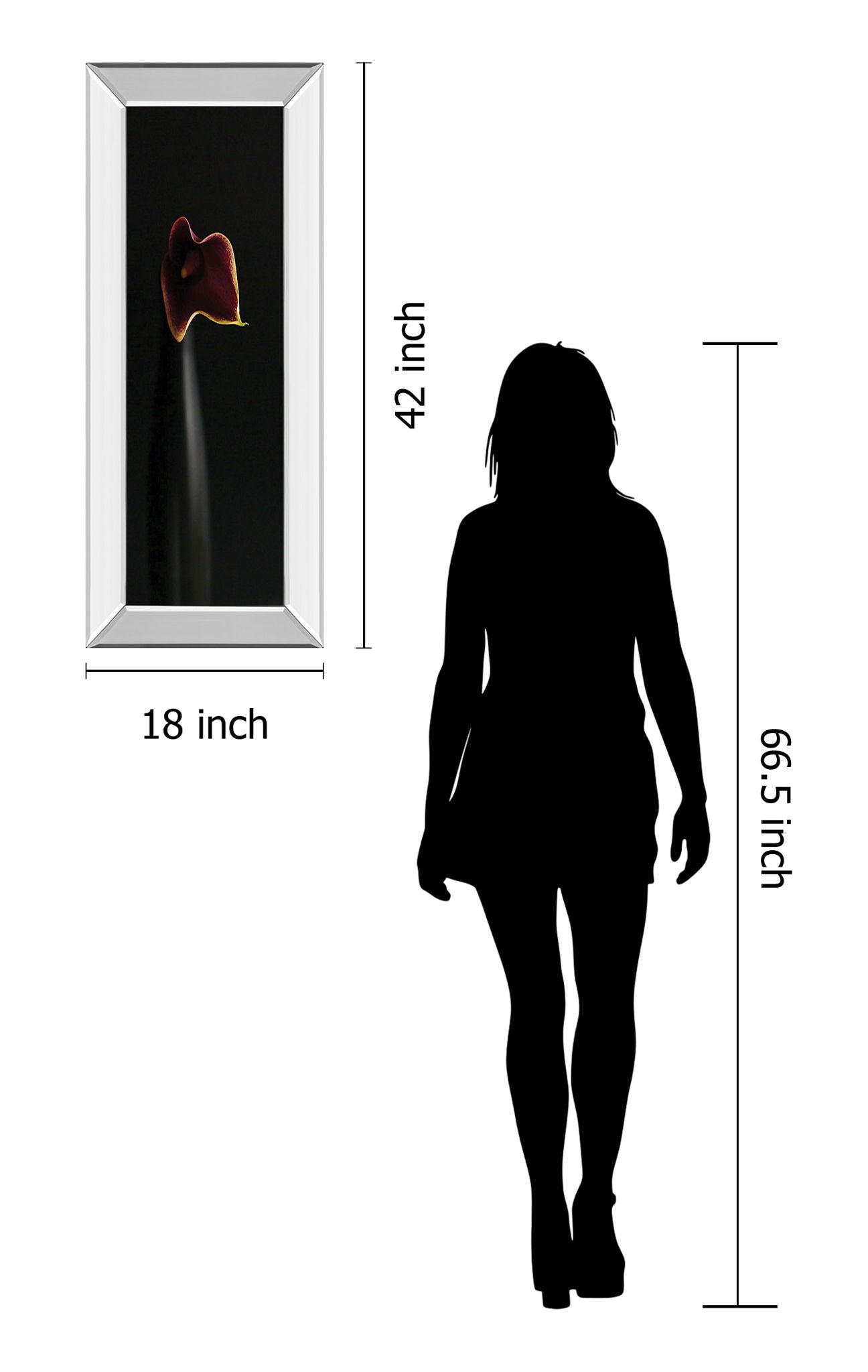 Discover the quiet elegance of Ebony Calla Lily, where a single calla flower emerges gracefully against a deep black backdrop. This vertical piece is encased in a sleek mirrored frame that reflects light and adds a contemporary edge to its traditional botanical charm. Protected by premium real glass, the rich dark reds and subtle yellows of the flower stand out vividly, inviting contemplation and calm into any living room, bedroom, or office. Expertly crafted and ready to hang, this artwork transforms your space with its refined simplicity and timeless beauty.