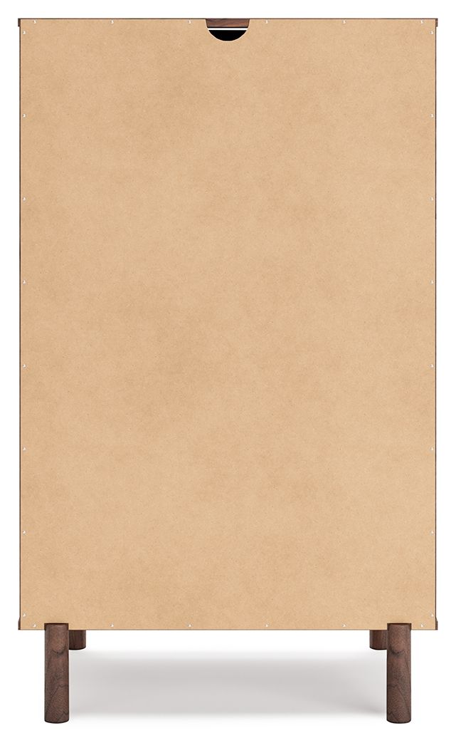 At the intersection of industrial cool and chic sophistication you’ll find this drawer chest. The rich brown finish over replicated walnut wood grain and burnished goldtone handles offer an authentic touch that plays well any way you style it. Simple and elegant in its design, this piece keeps your home decor grounded while elevating your modern style.