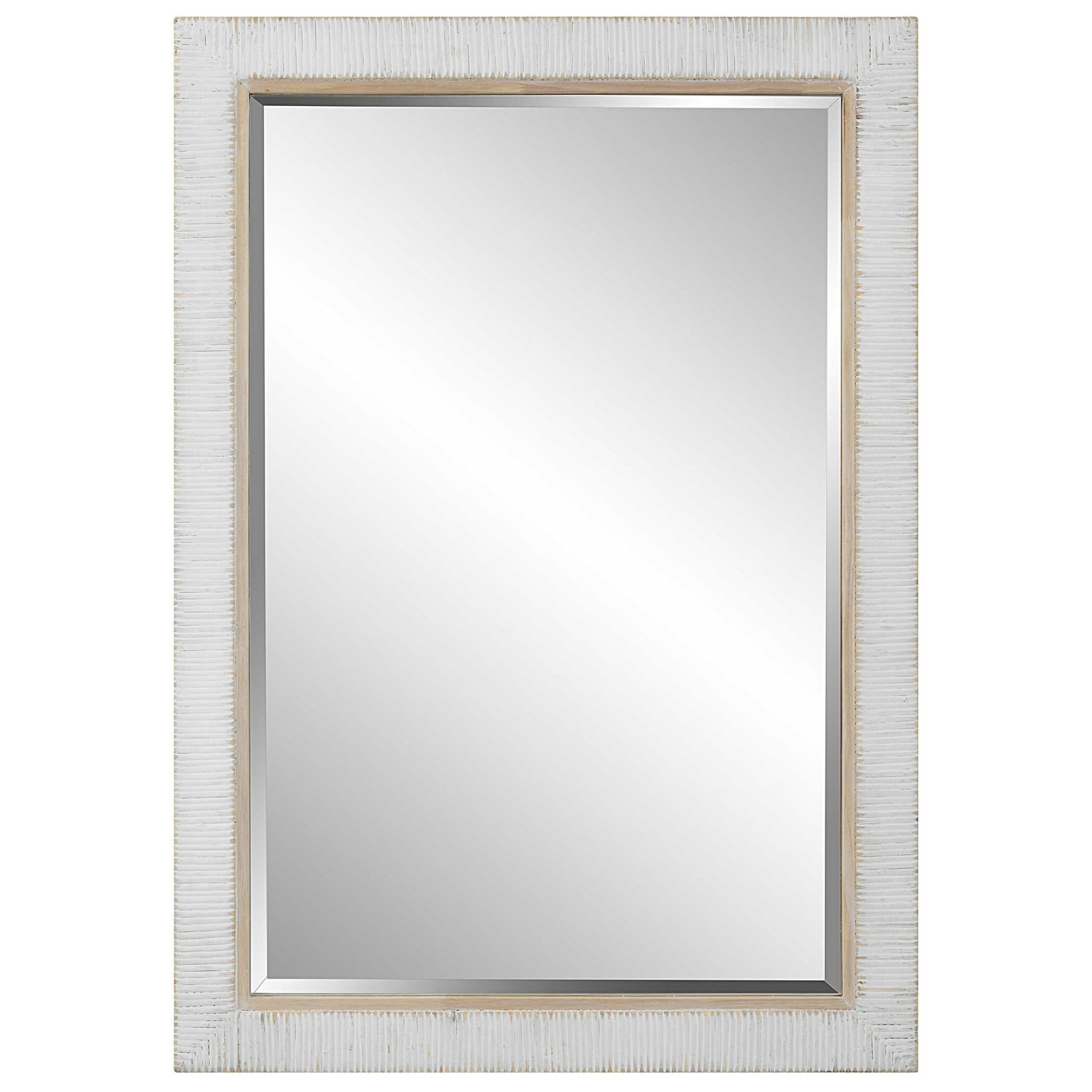 Based Upon Coastal Styling, This Rectangular Mirror Features A Whitewashed Rattan Wrapped Frame With A Solid Oak Inner Liner And A Generous 1 1/4" Bevel. May Be Hung Horizontal Or Vertical.
