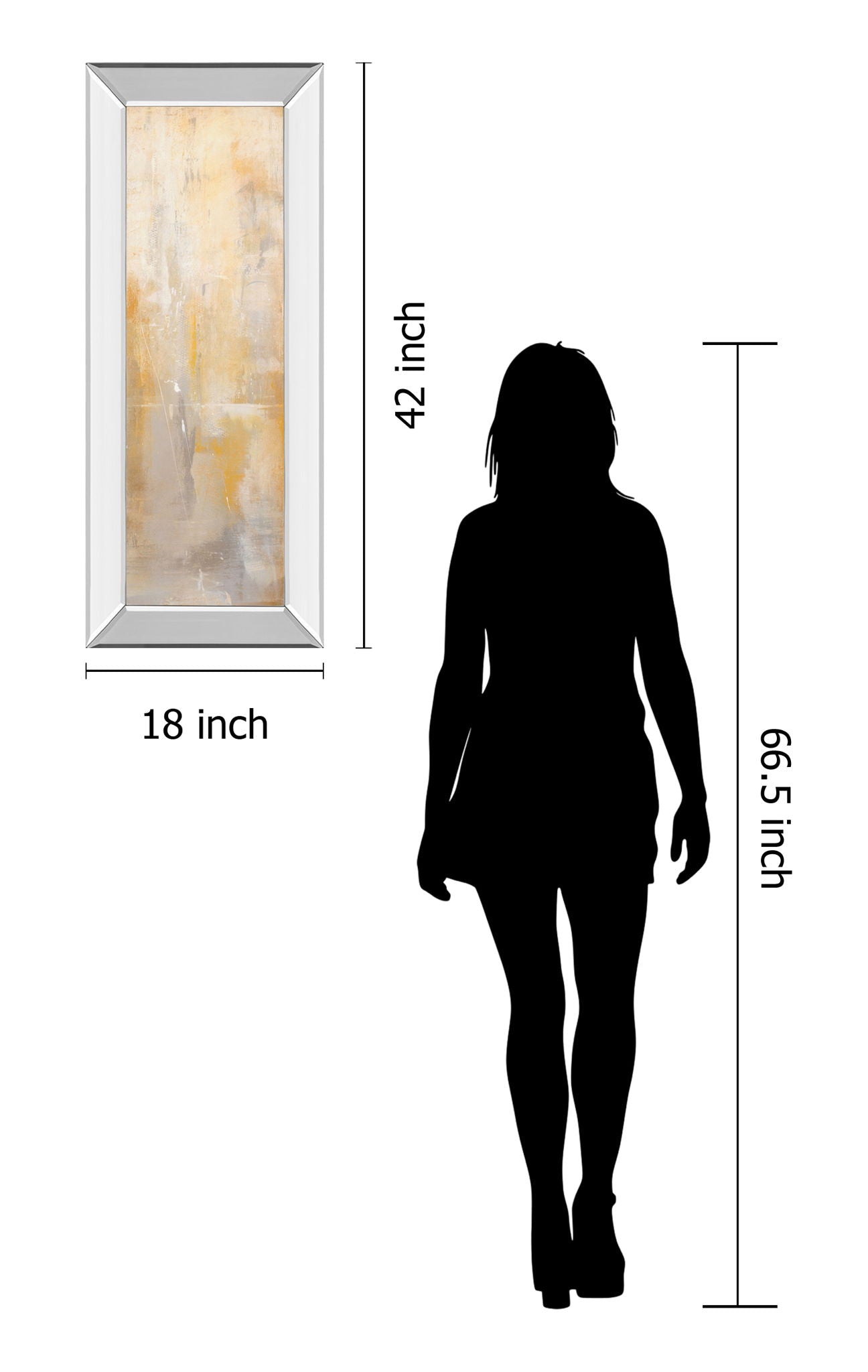 Transform your space with "Careless Whisper III," a captivating abstract piece that blends warm beige, gold, and soft gray tones into a harmonious composition. This 42 by 18-inch artwork is encased in a sleek, polished mirrored frame that adds depth and a modern touch, reflecting light to brighten any room. Crafted with premium real glass, it preserves the vivid colors and subtle textures, making it a timeless addition to living rooms, bedrooms, or offices seeking a refined yet inviting atmosphere. Expertly made in the USA and ready to hang, this piece effortlessly balances contemporary elegance with serene artistry.