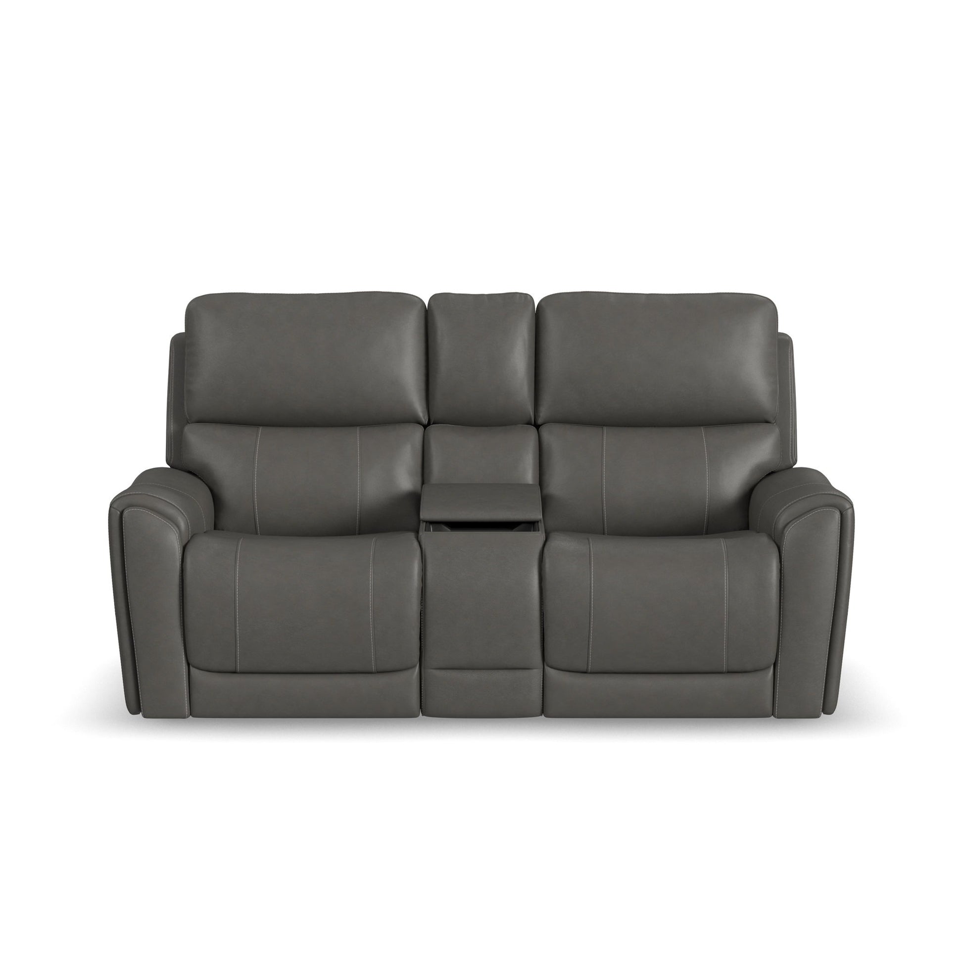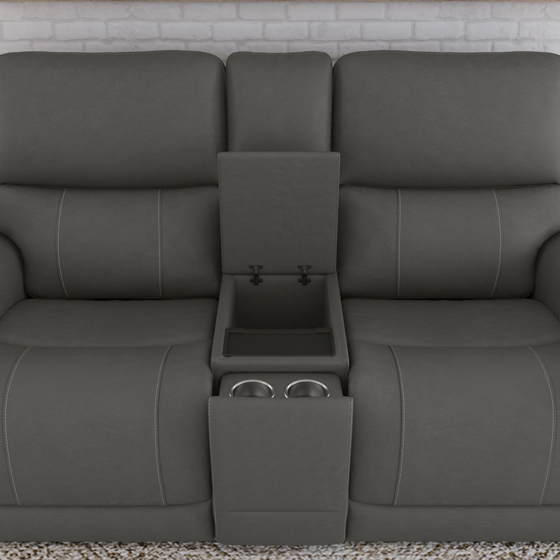 Transform Your Reclining Experience Power up and enjoy secretive perks with the Carter power reclining loveseat with console. This piece features triple power and our Zero Gravity mechanism, allowing you to customize the recline, headrest and lumbar support on both seats, including reclining to a zero-gravity position for the ultimate comfort experience. This loveseat will be a statement in your home with its genuine leather look that is a durable, easy to clean fabric in two color choices. Flared arms, contoured seats and heavy thread stitching details give it a sleek, yet striking look. And it all comes with discreet storage perks, including pop-out cupholders in the arms and a center storage console and a wireless charging pad.