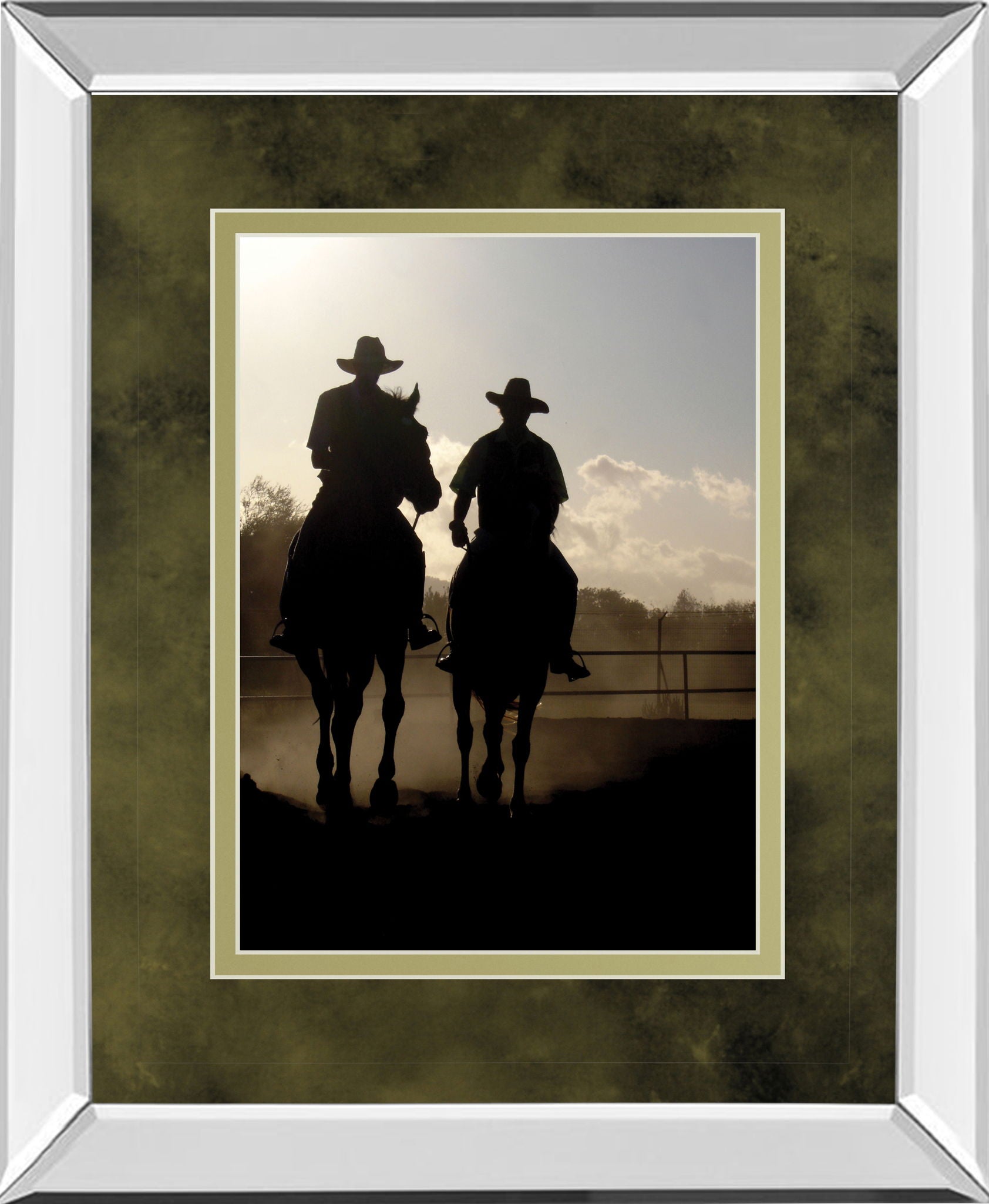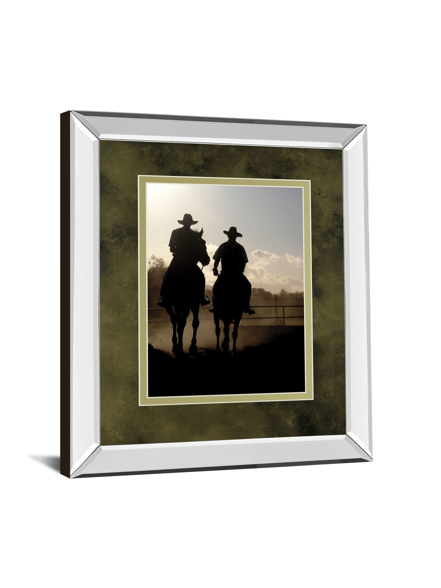 Step into the rugged charm of the open range with this captivating piece showcasing two cowboys silhouetted against a glowing sky. The mirrored frame adds a sleek, modern edge that reflects light and deepens the visual impact, while the double matting in earthy tones complements the natural hues of the scene. Crafted with premium materials and protected by real glass, this artwork brings a polished, gallery-quality finish to any living room, office, or den. It invites you to embrace the spirit of adventure and nostalgia, making it a striking focal point that celebrates the timeless bond between rider and horse.