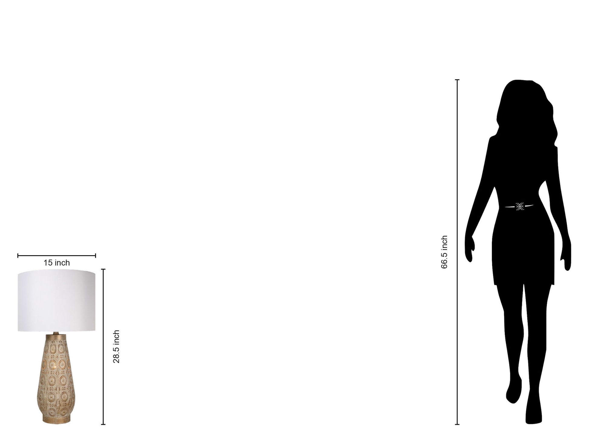 The Celestial Carve table lamp brings an exquisite blend of artistry and functionality to your space. Its laser-cut metal base in distressed tan and white creates a captivating play of light and shadow, enhancing the ambiance of any room. Topped with a crisp white linen drum shade, this lamp offers a soft, inviting glow perfect for living rooms or bedside tables. The integrated night light adds a gentle illumination, making it ideal for cozy evenings.