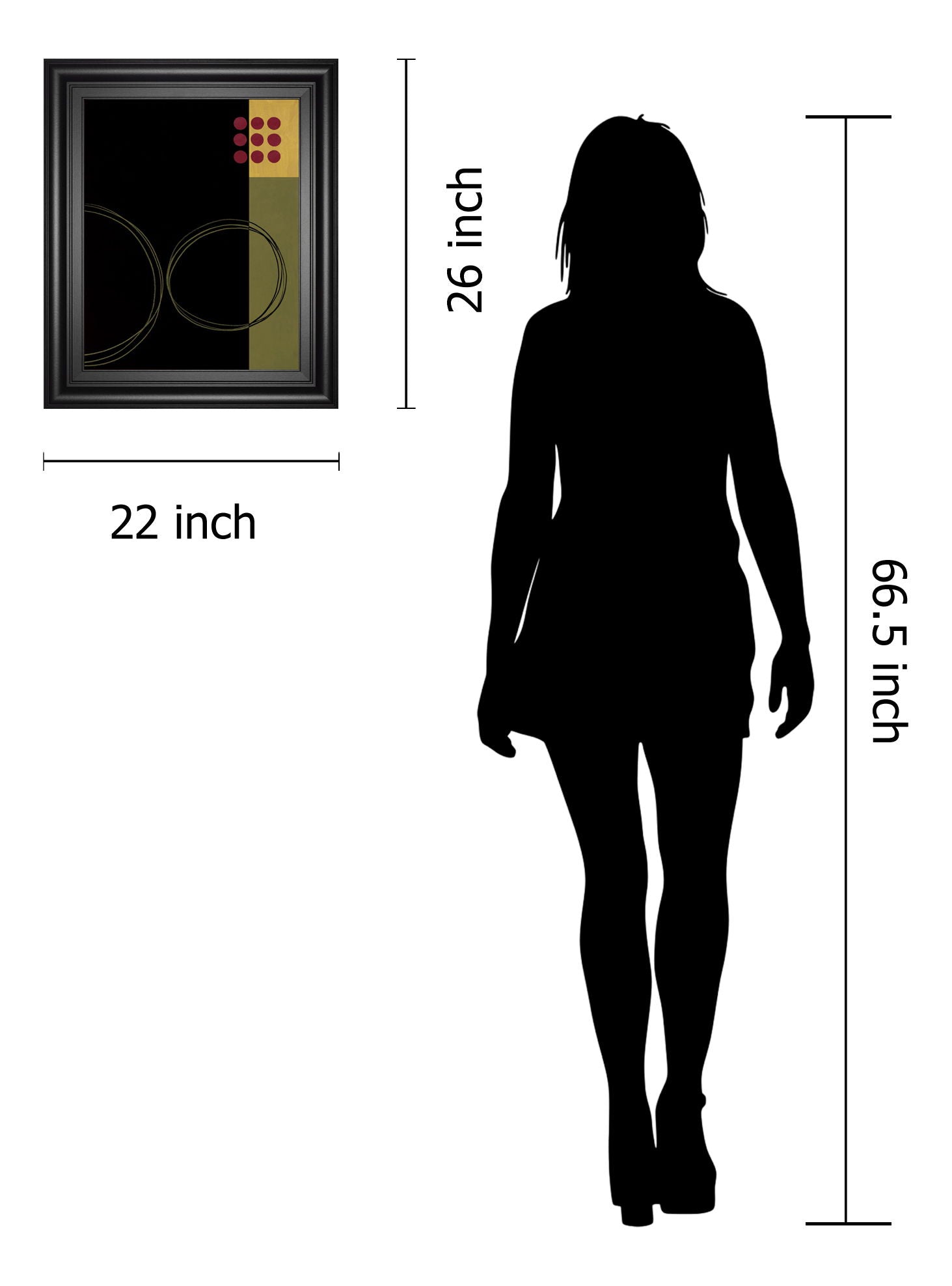 This captivating piece invites you into a world where abstract circles and geometric forms converge in a bold yet harmonious dance. The deep black background sets a dramatic stage for olive green rings and mustard yellow blocks, punctuated by rich red dots that add a vibrant contrast. Encased in a sleek midnight aura frame, the artwork exudes modern sophistication and depth, making it a perfect statement for living rooms, offices, or dens. Crafted with premium materials and crystal-clear glass, it ensures vivid colors and sharp details that transform any space with contemporary elegance and artistic flair.
