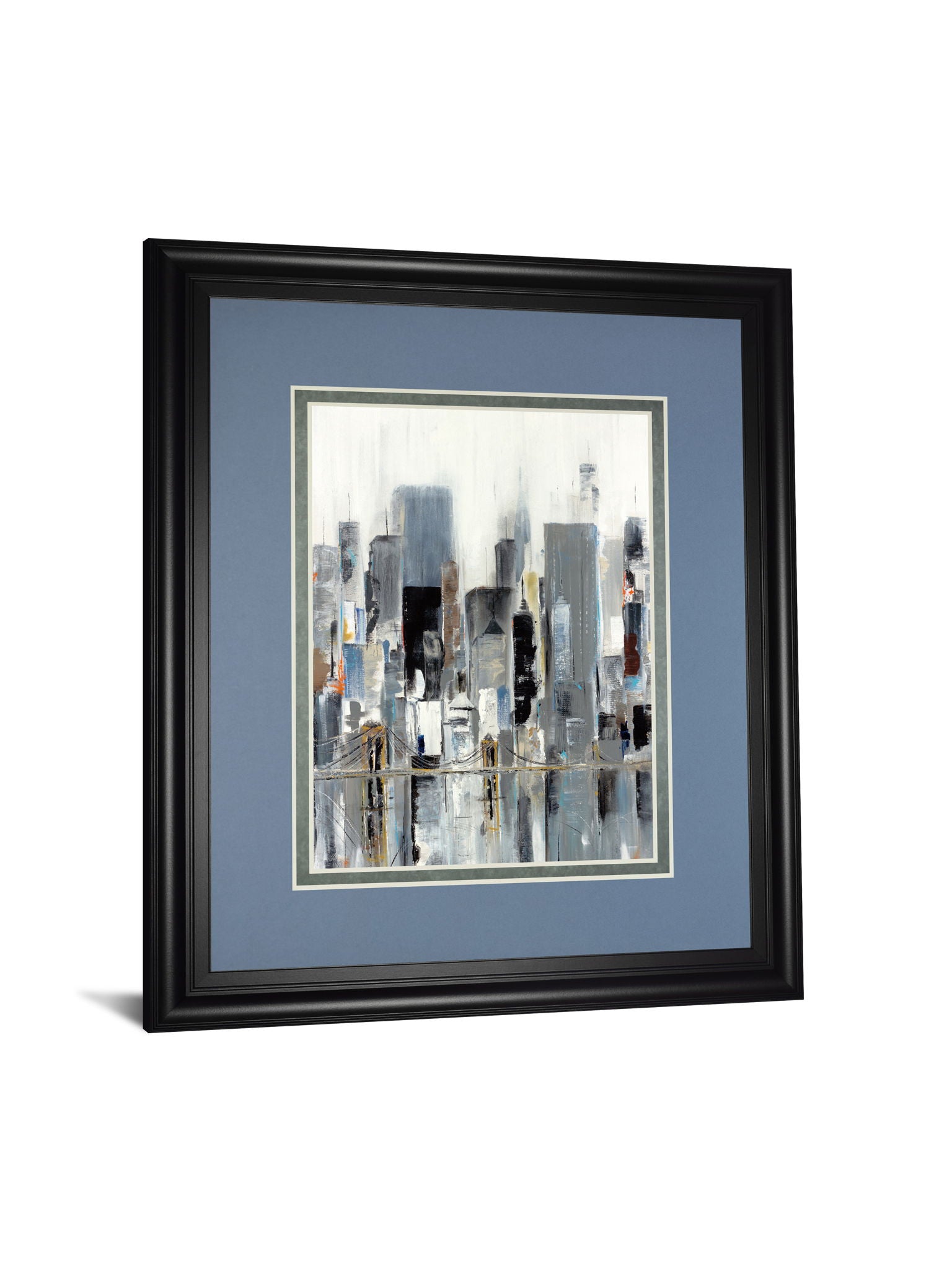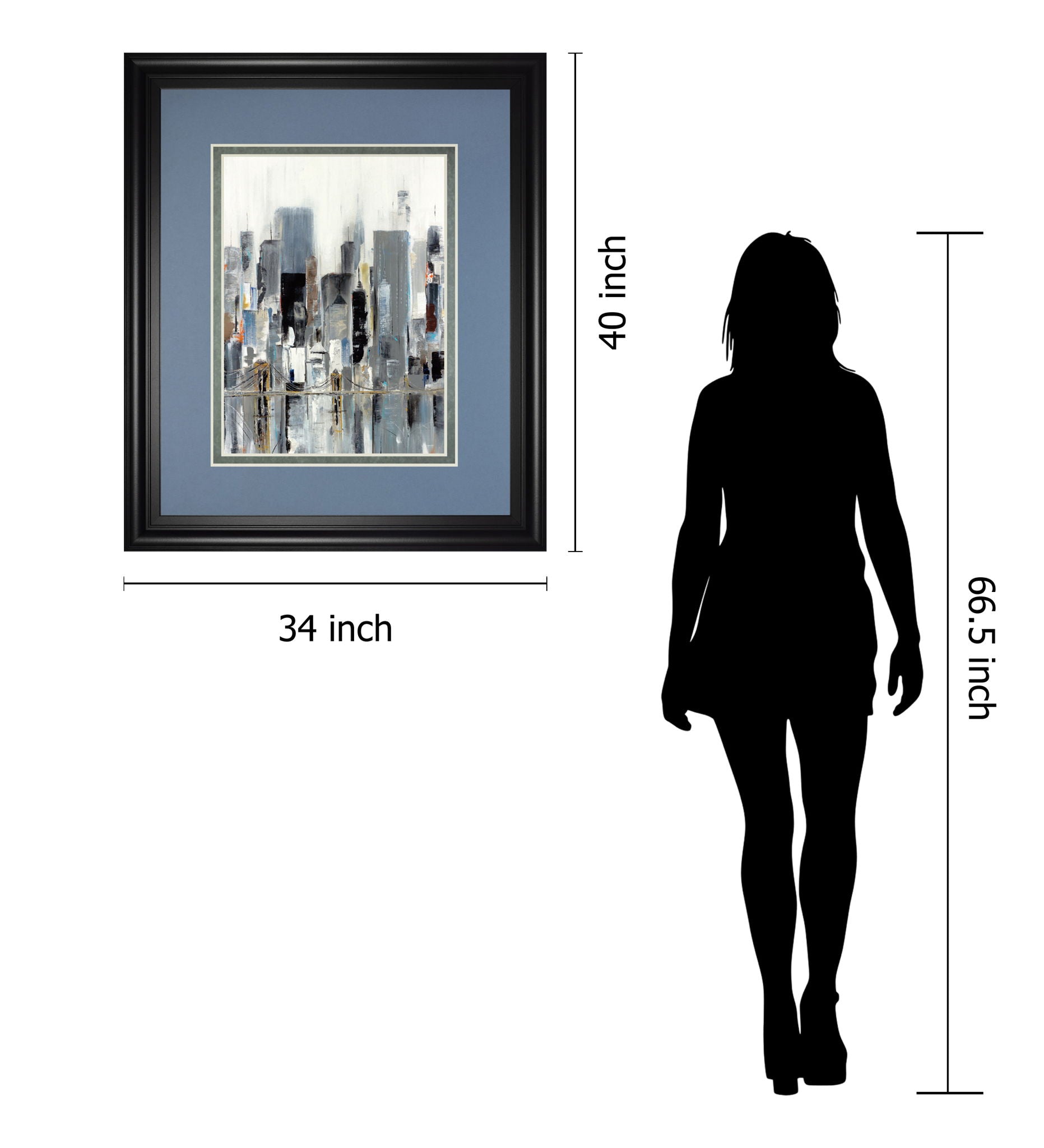 Step into the heart of the city with this captivating piece that captures the essence of urban life through a blend of muted blues, grays, and earth tones. The artwork’s graphic style brings architectural forms and a bridge silhouette to life, evoking the dynamic spirit of a metropolitan skyline. Framed in a sleek midnight aura frame with double matting, it adds depth and sophistication to any living room or office, while premium real glass protection ensures its lasting beauty. This piece is ready to hang and designed to elevate your space with a modern, refined touch that resonates with timeless urban elegance.