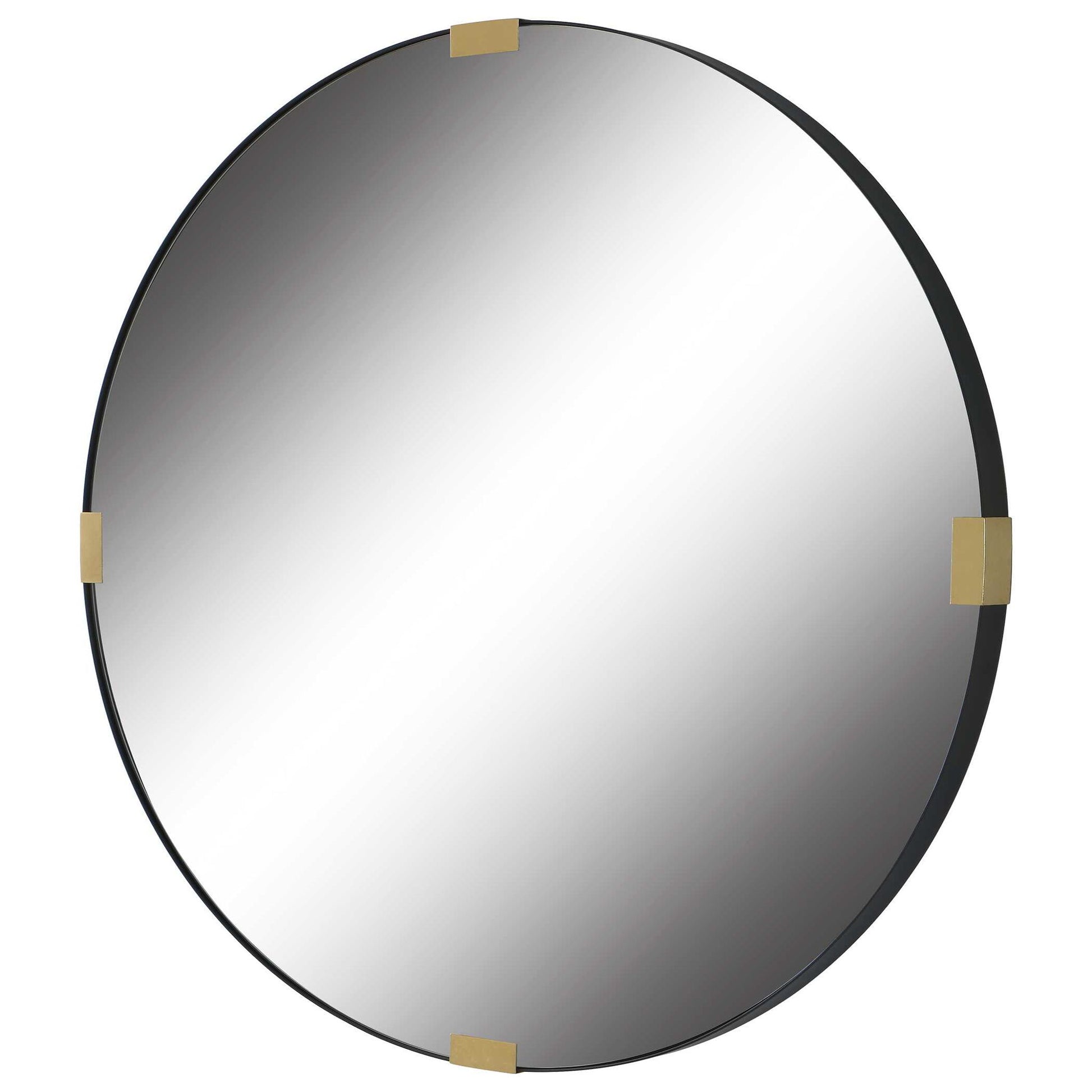 This Round Mirror'S Sleek Design Makes It The Perfect Modern Accent. The Iron Band Frame Is Finished In Satin Black And Is Accented By Lightly Antiqued Gold Leaf Details.
