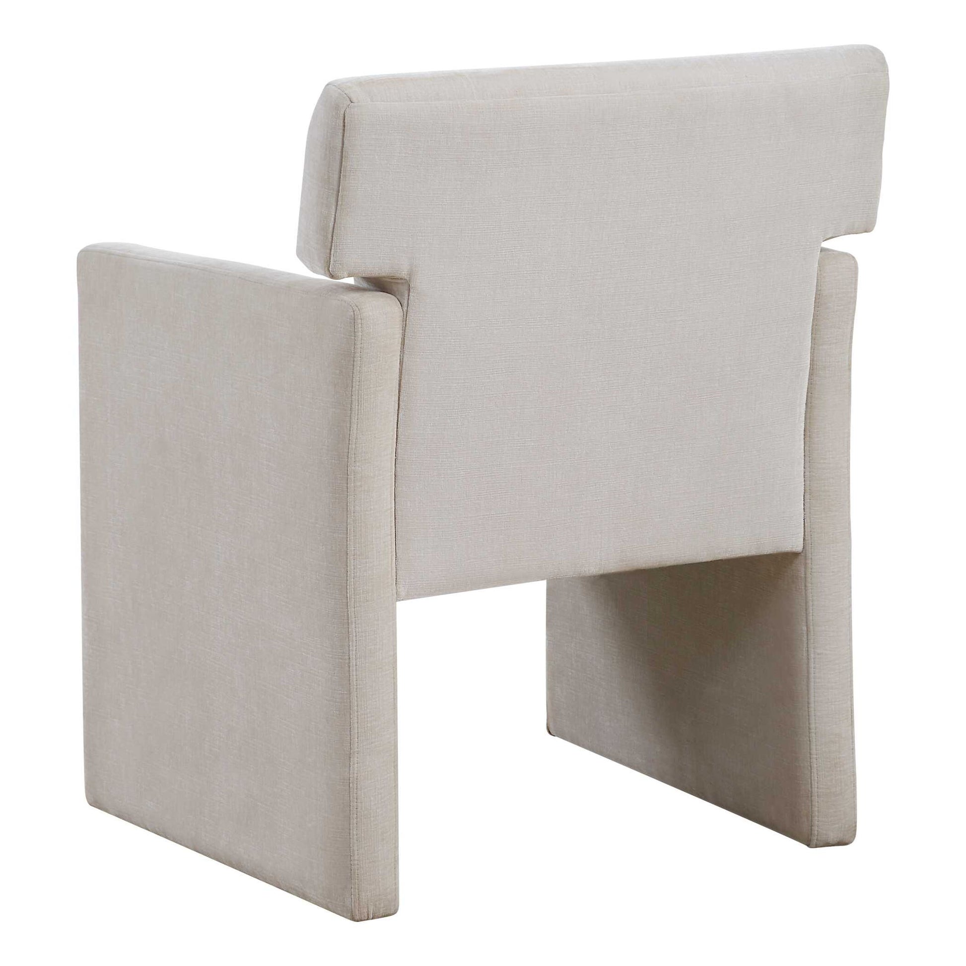 An Elegant And Clean-lined Dining Chair, Perfect Used As The Host And Hostess Seat, Featuring An Elevated Back Design. Fully Upholstered In An Ivory Polyester Velvet With Crosshatched Texturing.