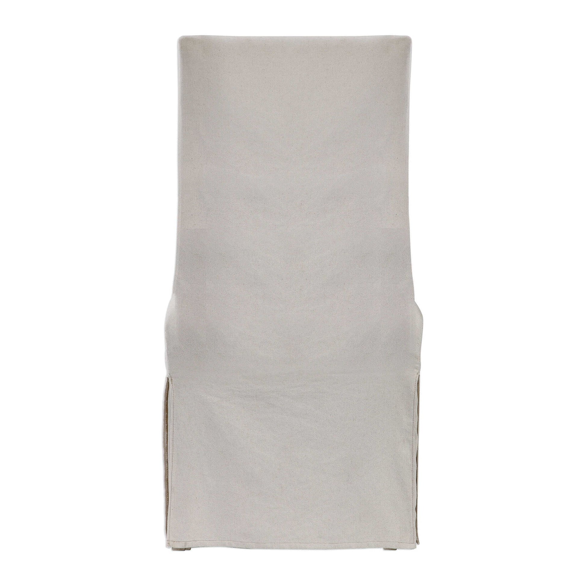 Simplistic In Form, This Casually Sophisticated Armless Chair Features A Tailored Off-white Linen Blend Slipcover With A Plush Cushion Seat And Kidney Pillow For Added Comfort, With Added Performance Treatment To Resist Soiling And Stains.