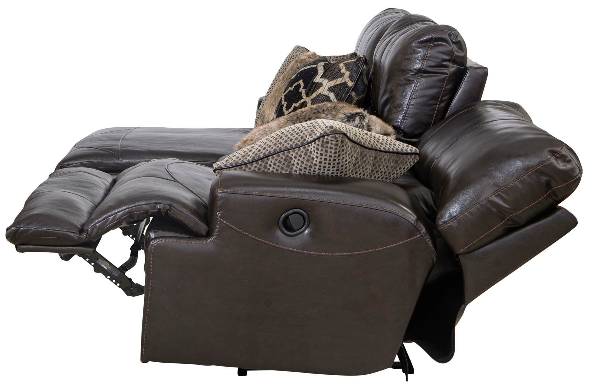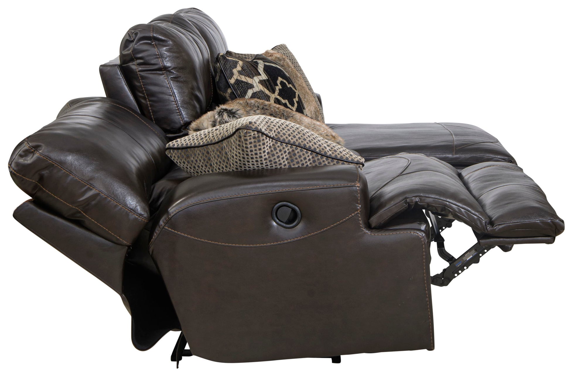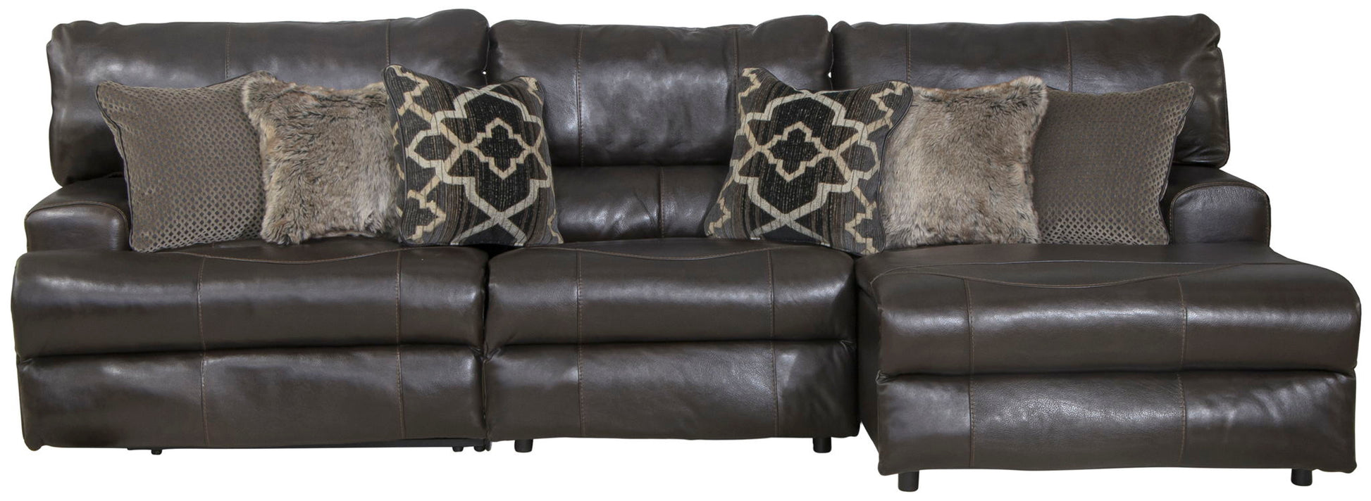 Don't settle for fake leather! The Como reclining modular collection features durable Italian top grain cowhide leather everywhere your body touches and precision matched PU on the outside back and sides. There is nothing like the feel of real leather! Attention to style and detail was not missed on this collection. The clean transitional styling, included stylish accent pillows and the bold luggage stitching of the Como will be a great addition to your home. Sometimes reclining furniture has comfort but no style but the Como collection has it all! The seats are constructed with individually pocketed coils encased in foam and topped with cool gel memory foam for maximum comfort and support. The backs are filled with resilient plush polyester fiber to create a seating experience you won't want to leave.
