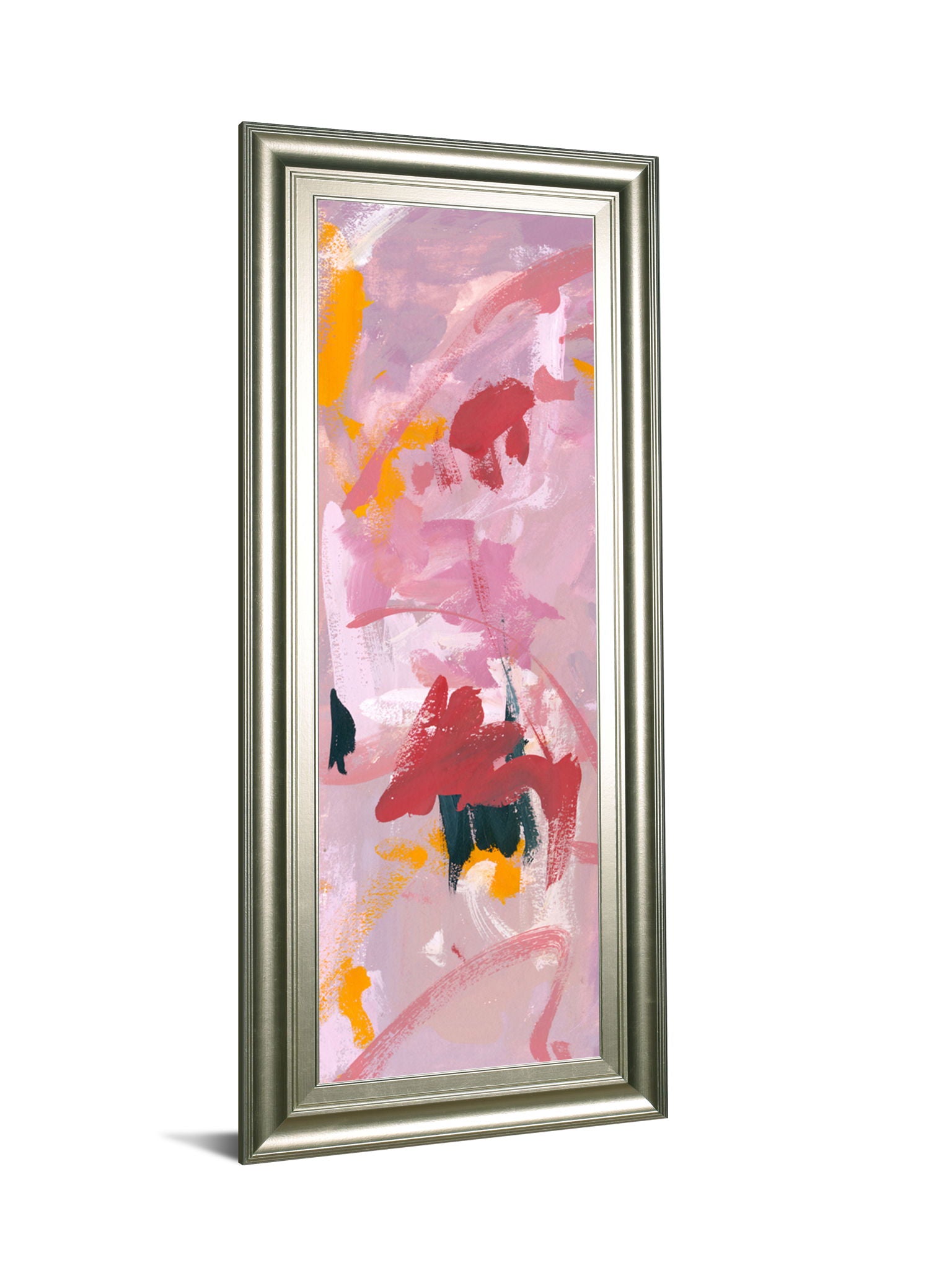 Immerse yourself in the dynamic energy of this captivating abstract piece, where vibrant reds, soft pinks, bold yellows, and deep blues dance across the canvas with fluid brushstrokes. Encased in a sleek silver frame, the artwork exudes both depth and sophistication, making it a striking addition to any living room, office, or creative space. Crafted with premium real glass for crystal-clear protection and expertly assembled for effortless hanging, this framed wall art transforms your environment with a modern, artistic statement that invites inspiration and elegance.