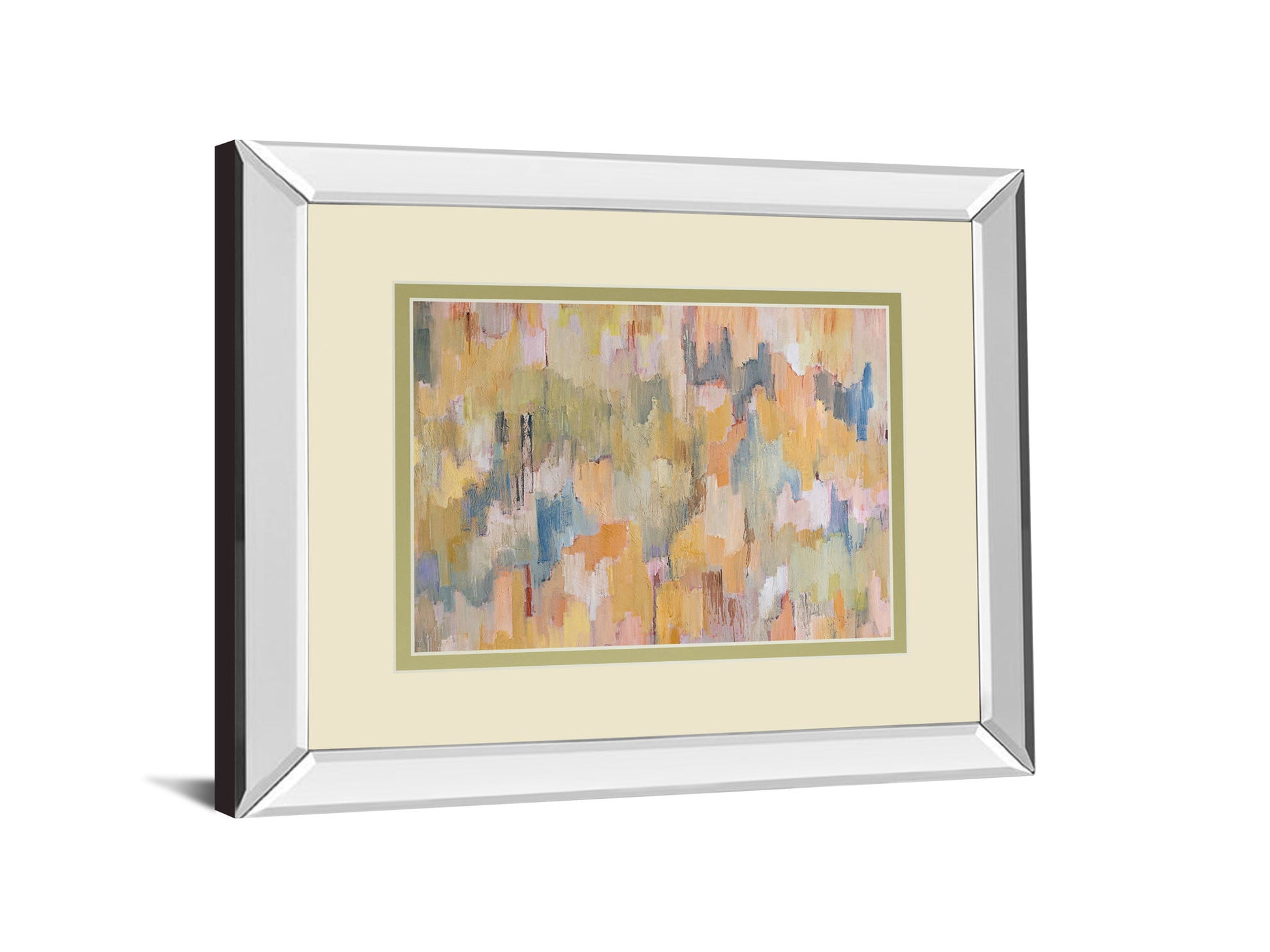Concerto Grey invites you into a serene world of muted pastels and earthy hues, blending soft beiges, greens, blues, and subtle touches of orange and pink in a contemporary abstract design. This horizontal piece is beautifully encased in a sleek 2.5-inch mirrored frame that adds a reflective depth and modern elegance to any living room or office. The double-matted beige borders enhance the layered texture of the graphic art, while premium real glass protects the artwork and intensifies its vibrant colors. Ready to hang with durable hardware, this framed wall art effortlessly elevates your space with a polished gallery-style presence that balances sophistication and warmth.
