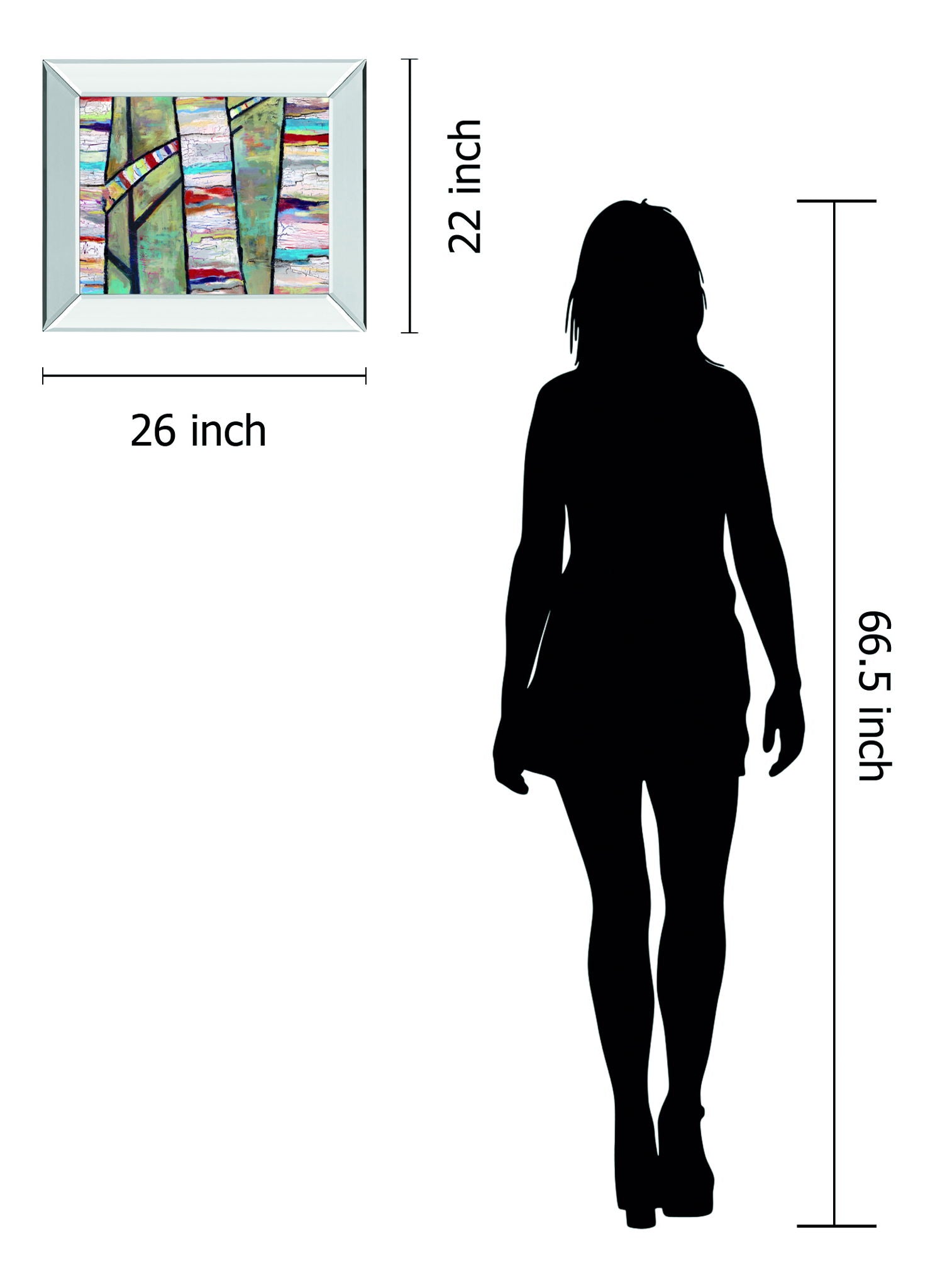 Step into a world of vibrant abstraction with this captivating framed wall art, where bold strokes and a rich palette of reds, blues, greens, and neutrals come alive. The sleek mirrored frame not only adds a modern touch but also reflects light to enhance the artwork's depth and presence in any living or office space. Crafted with premium real glass, this piece ensures vivid color and lasting protection, making it a sophisticated focal point that invites conversation and admiration. Ready to hang and proudly made in the USA, it blends contemporary style with expert craftsmanship for a truly elegant addition to your décor.