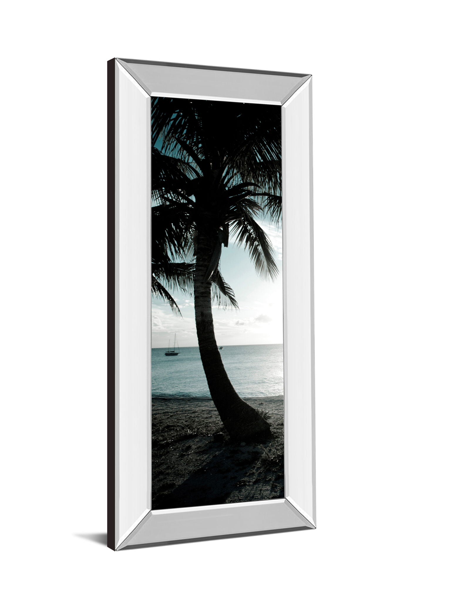 Step into a tranquil tropical escape with this Bimini Palm Silhouette framed print. The striking silhouette of a palm tree stands tall against a serene ocean horizon, inviting a sense of calm and relaxation into any room. Encased in a sleek mirrored frame, the artwork gains a modern edge that reflects light and enhances its depth, while the premium real glass protects the vibrant colors and fine details. Perfectly suited for living rooms, bedrooms, or offices, this piece brings a touch of coastal elegance and peaceful nature indoors, ready to hang and elevate your space with effortless style.
