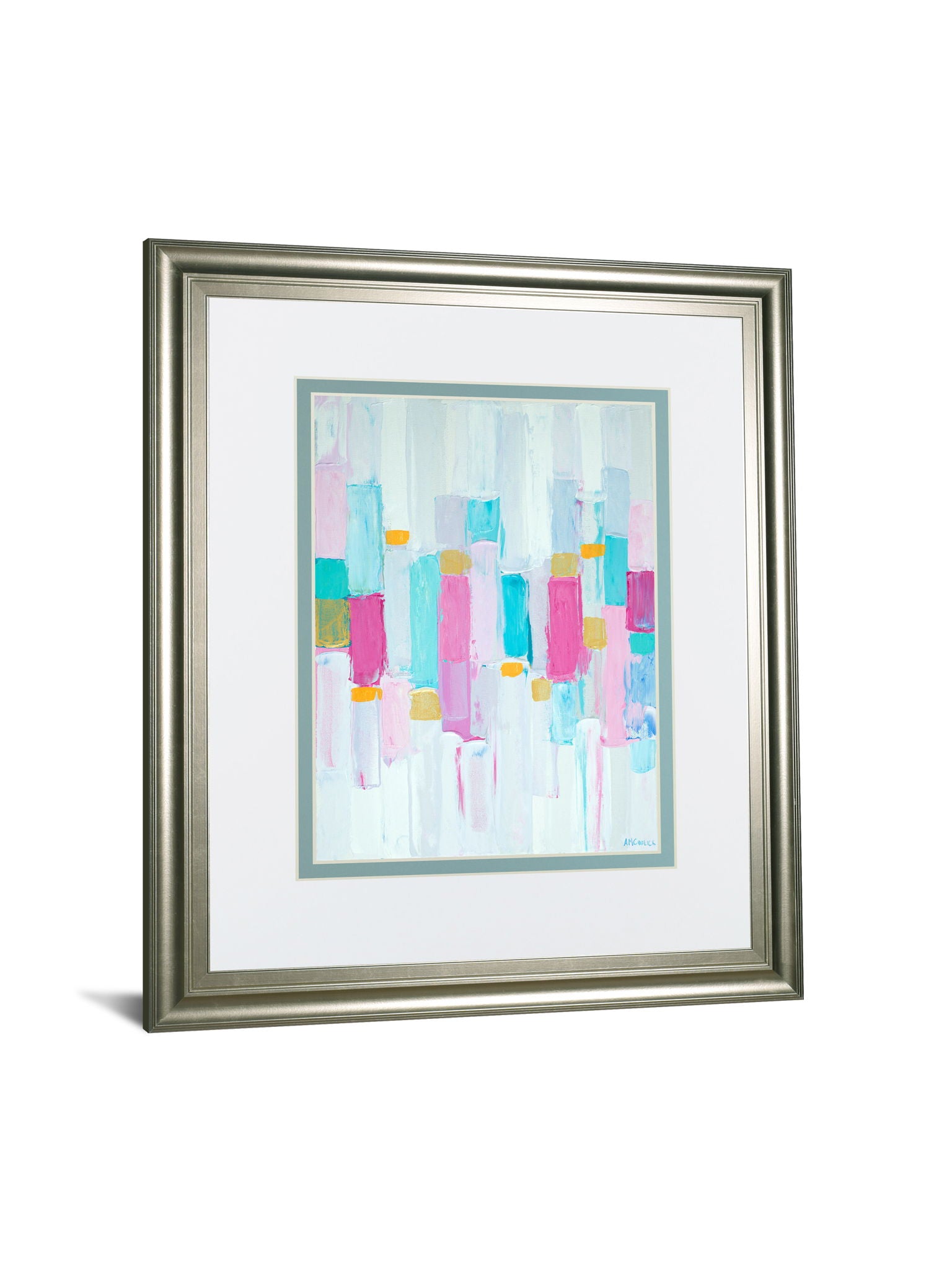 Immerse yourself in the serene beauty of this abstract composition, where soft pastels meet vibrant splashes of turquoise, pink, and gold. The layered brushstrokes create a textured rhythm that invites contemplation and sparks creativity, making it a perfect centerpiece for any living room or office. Encased in a sleek silver frame with double matting, this mixed media piece is protected by real glass, ensuring every detail shines with gallery-quality elegance and timeless charm.