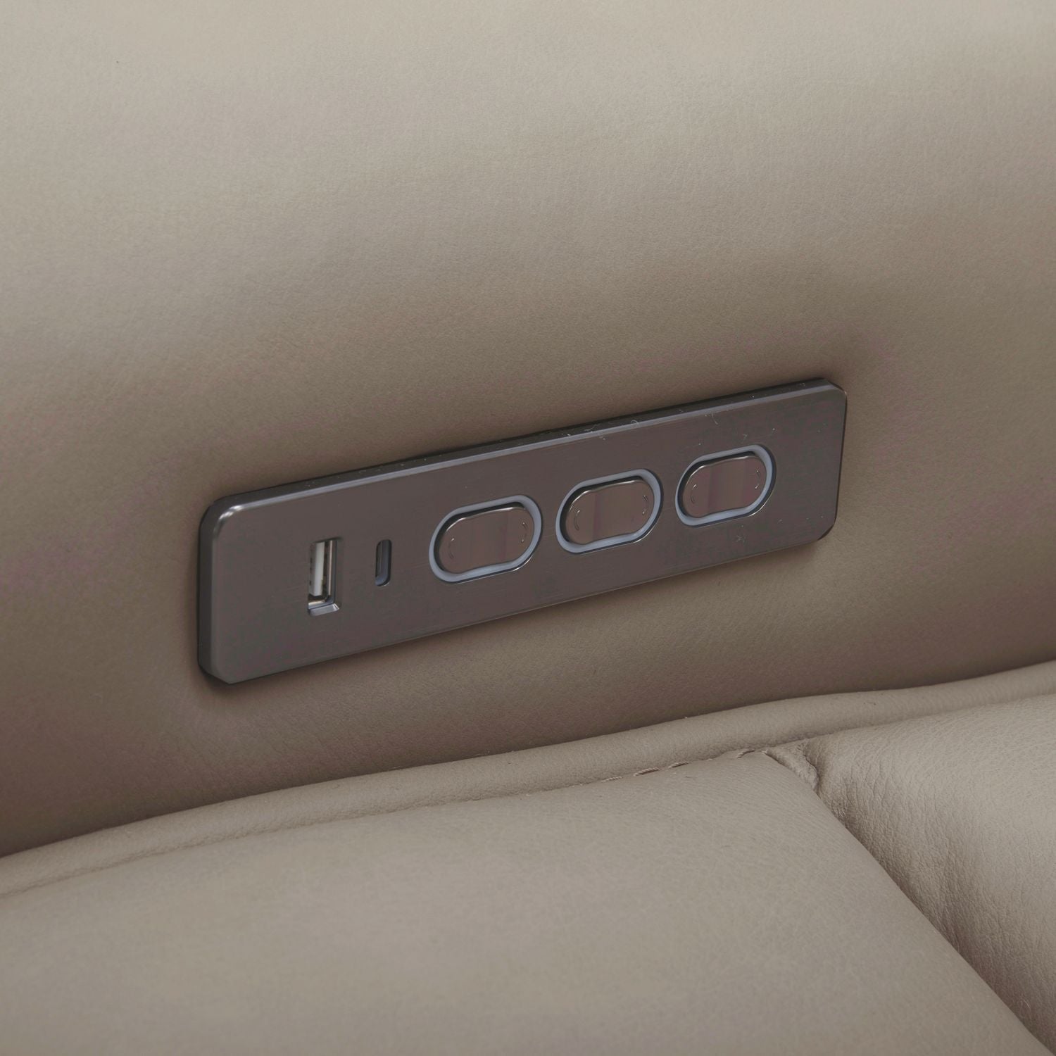 The Cora motion collection is a haven of relaxation. This lovely silhouette discreetly hides the triple power function and captivates your attention with a layered pad-over arm, tall-divided back cushion, gently contoured seat, and a soft layered waterfall chaise, all beautifully embellished with a decorative jumbo welt highlighting the contours of the design. Cora's comfort features include power adjustable headrest, zero gravity recline, and powered mechanical lumbar with the triple power control switch discreetly positioned within the seat construction. Designed for active environments, Cora is covered in 100% top grain, semi-aniline leather/vinyl match with a smooth grain, butter soft touch, subtle two-tone color and a protective finish coat. Available colors of Toast or Cashmere.