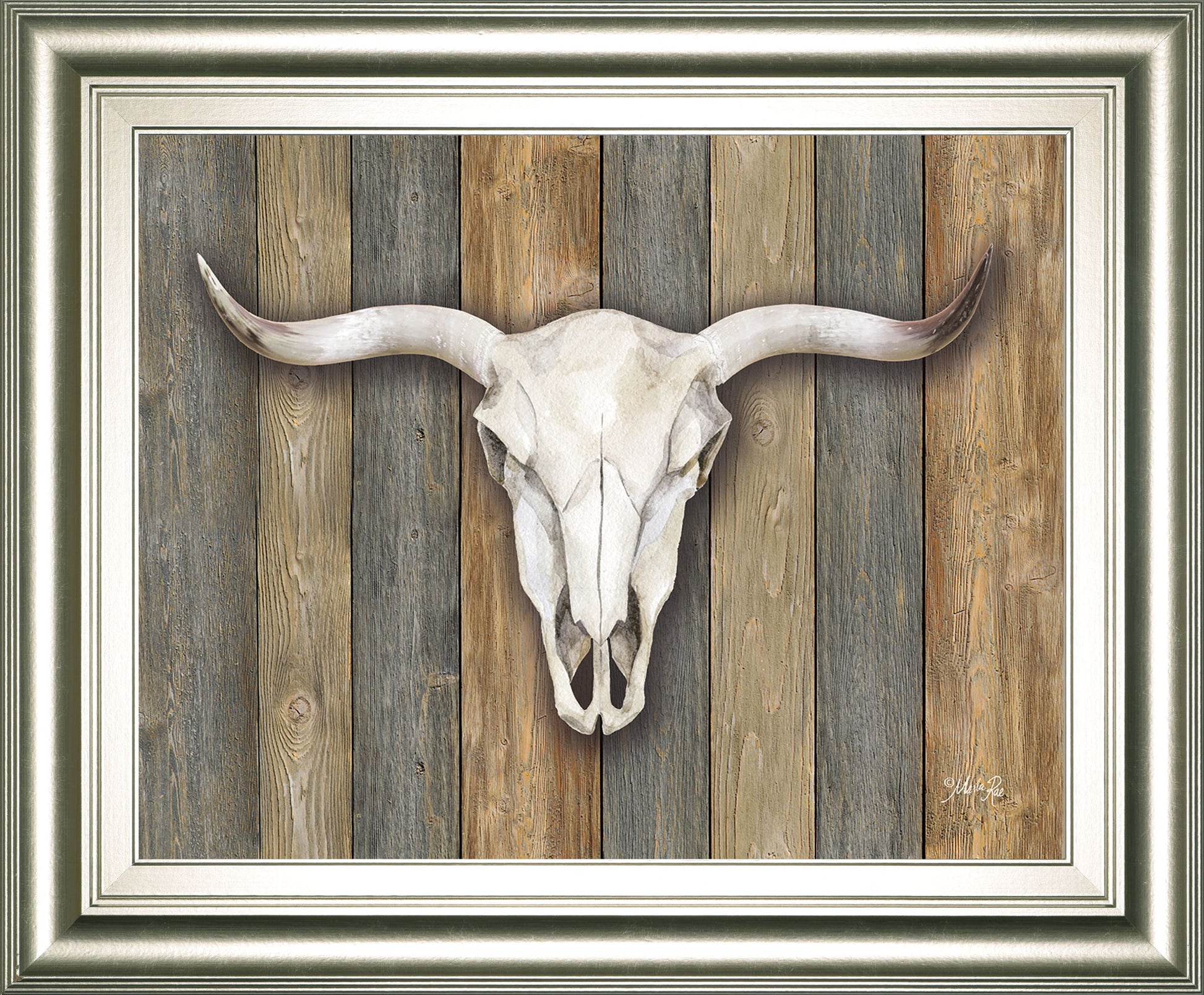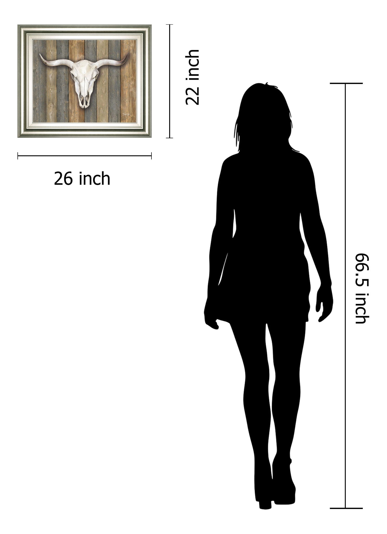 This striking piece captures the rugged spirit of the American West with a beautifully detailed cow skull set against a backdrop of weathered wooden planks. The natural earth tones and rustic textures blend seamlessly with the sophisticated silver frame, creating a harmonious balance of boldness and refinement. Perfect for living rooms, offices, or dens, this framed artwork evokes timeless charm and a connection to nature, making it a captivating focal point that invites admiration and conversation.