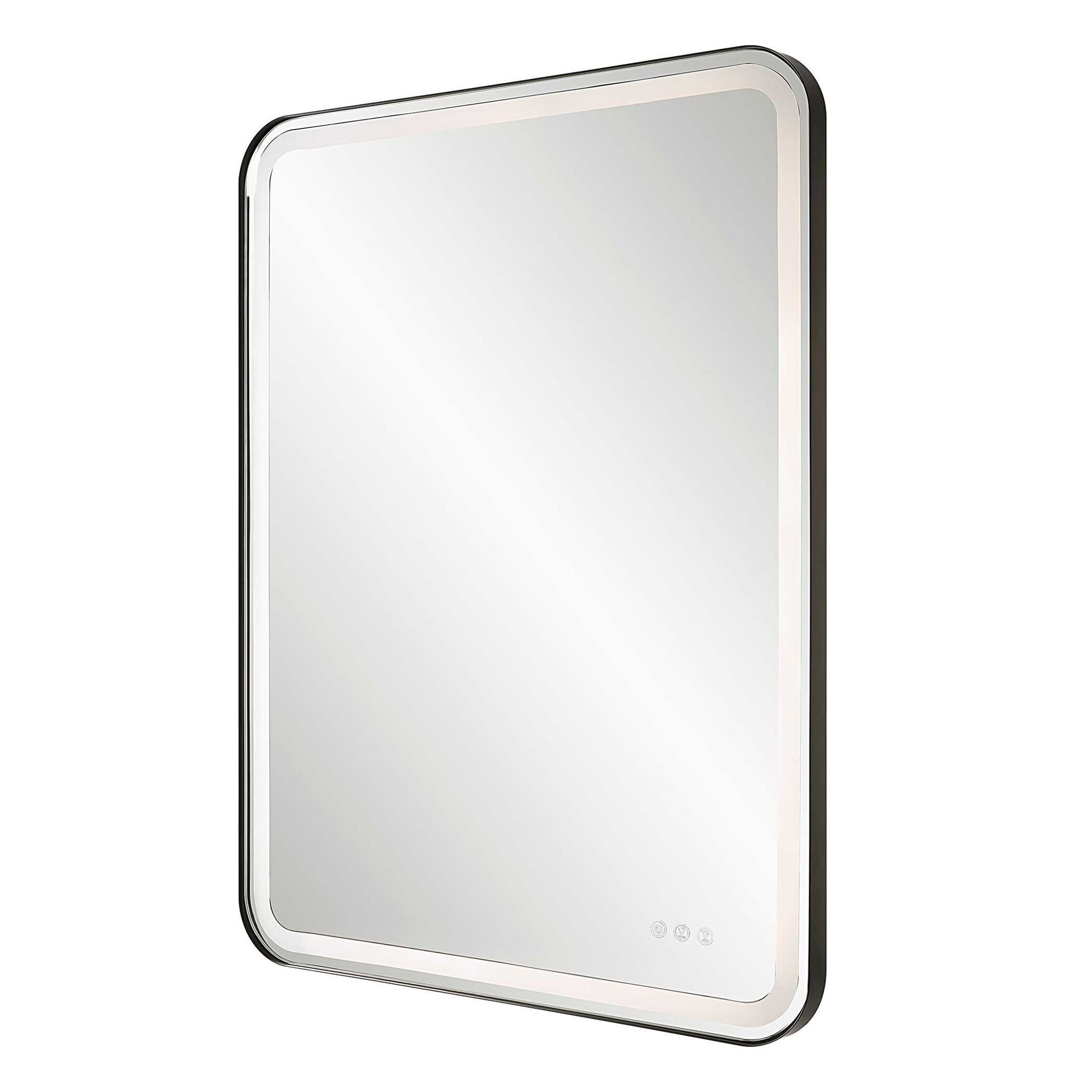 Versatile In Design, This Mirror Has Integrated LED Lighting That Illuminates Through The Frosted Strip In The Polished Edged Mirror. The Metal Frame Is Finished In A Satin Black And Is Off Set From The Wall To Allow Ambient Lighting From The Back. Easy To Use Touch Buttons Are Featured On The Bottom Right Of The Mirror With An On Off Function, Touch And Hold Kelvin Control From 2700k To 4000k, And Touch And Hold Brightness Control. LED Lights Rated At 40,000 Hours. Ships With Plug, But Can Be Hardwired Professionally. Touch Screen Icons Continue To Illuminate When Powered Off For Easy Navigation In Dark Settings.