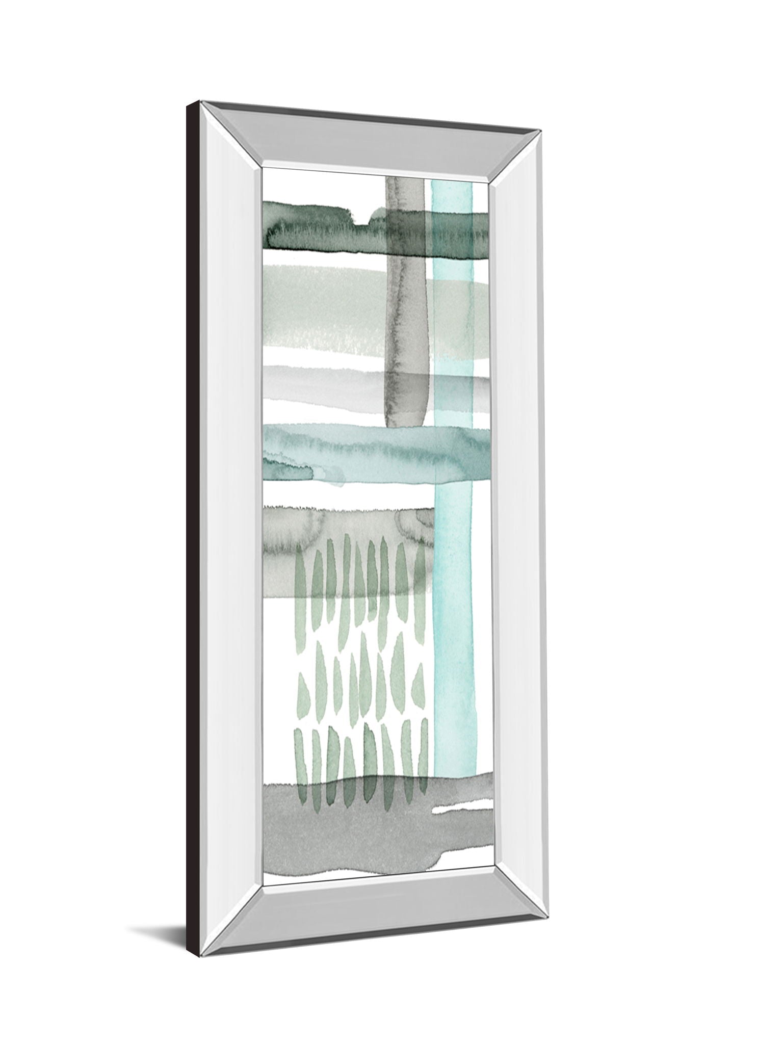 Transform your space with Serene Strokes, a captivating abstract watercolor piece that brings calm and sophistication to any room. Featuring gentle washes of green, gray, and aqua, this artwork evokes a sense of tranquility through its soft, layered brushstrokes. Encased in a sleek mirrored frame, it reflects light and adds a subtle touch of elegance, making it a perfect accent for living rooms or offices. Ready to hang and crafted with care, this piece blends modern minimalism with an industrial edge, inviting a peaceful yet stylish ambiance into your home or workspace.