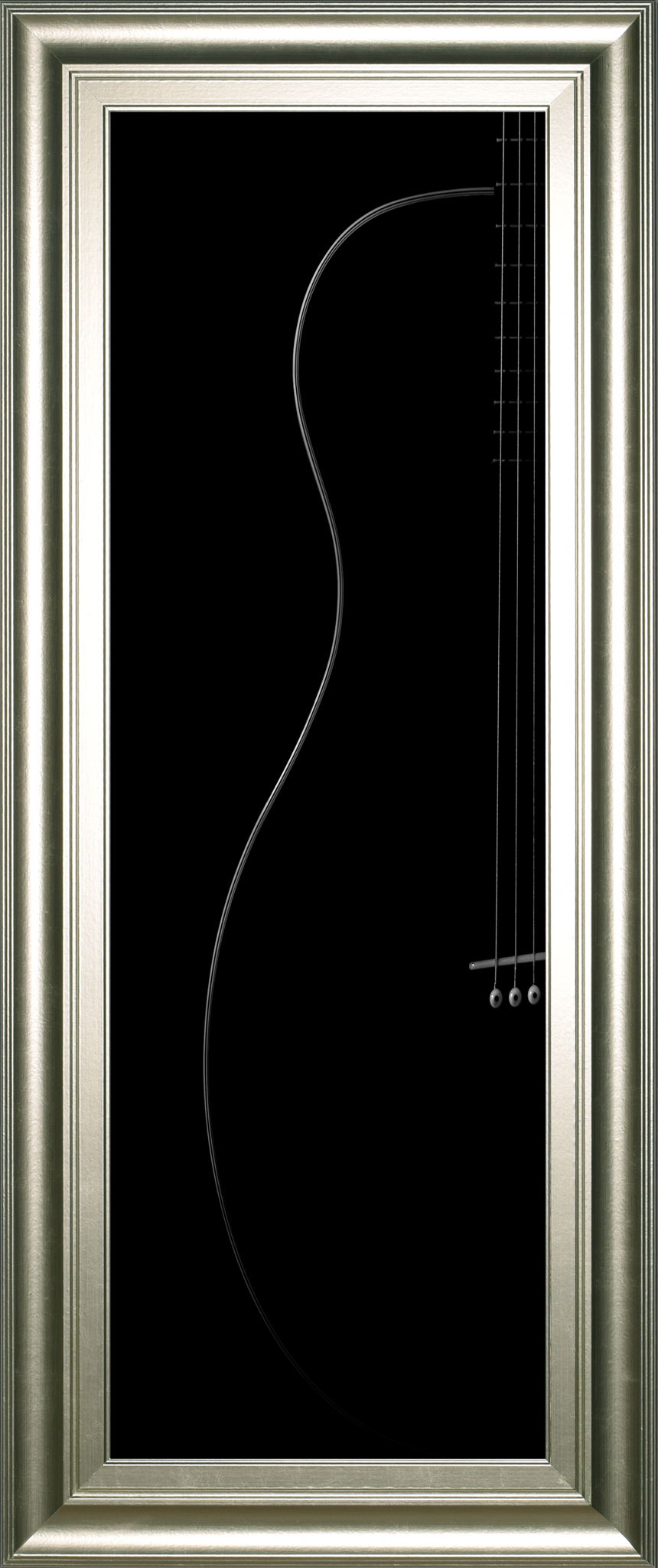 Embrace the quiet elegance of this Curved Silhouette framed wall art, where minimalist design meets musical inspiration. The delicate outline of a stringed instrument is traced against a deep black background, creating a subtle yet striking visual that invites reflection and adds a refined touch to any living or music room. Encased in a wide silver frame with crystal-clear glass, this piece not only protects the artwork but also enhances its sophisticated appeal. Perfectly suited for transitional décor, it arrives ready to hang, transforming your space into a serene sanctuary that celebrates the harmony of sound and style.