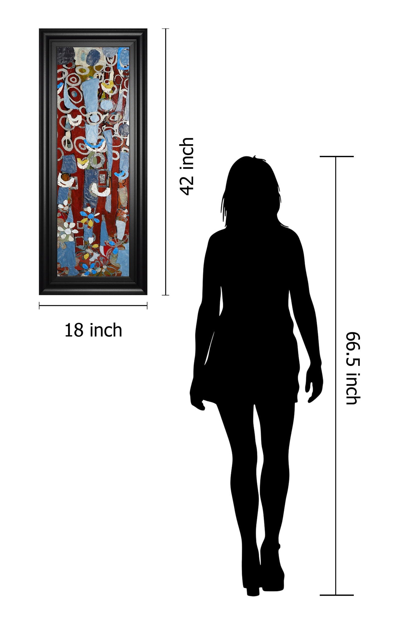 Step into a world where nature and abstraction entwine in perfect harmony with “Cut Paper Trees II.” This captivating 42 by 18-inch framed wall art showcases a vibrant collage of layered paper and paint, blending bold reds, blues, and earth tones into a dynamic botanical scene. The midnight aura frame adds a sleek, sophisticated touch that highlights the intricate textures and shapes, inviting viewers to explore the depth and movement within the piece. Crafted with care and real glass, this artwork brings a fresh, contemporary energy to any living room, office, or hallway, making it a striking statement of modern artistry inspired by the natural world.