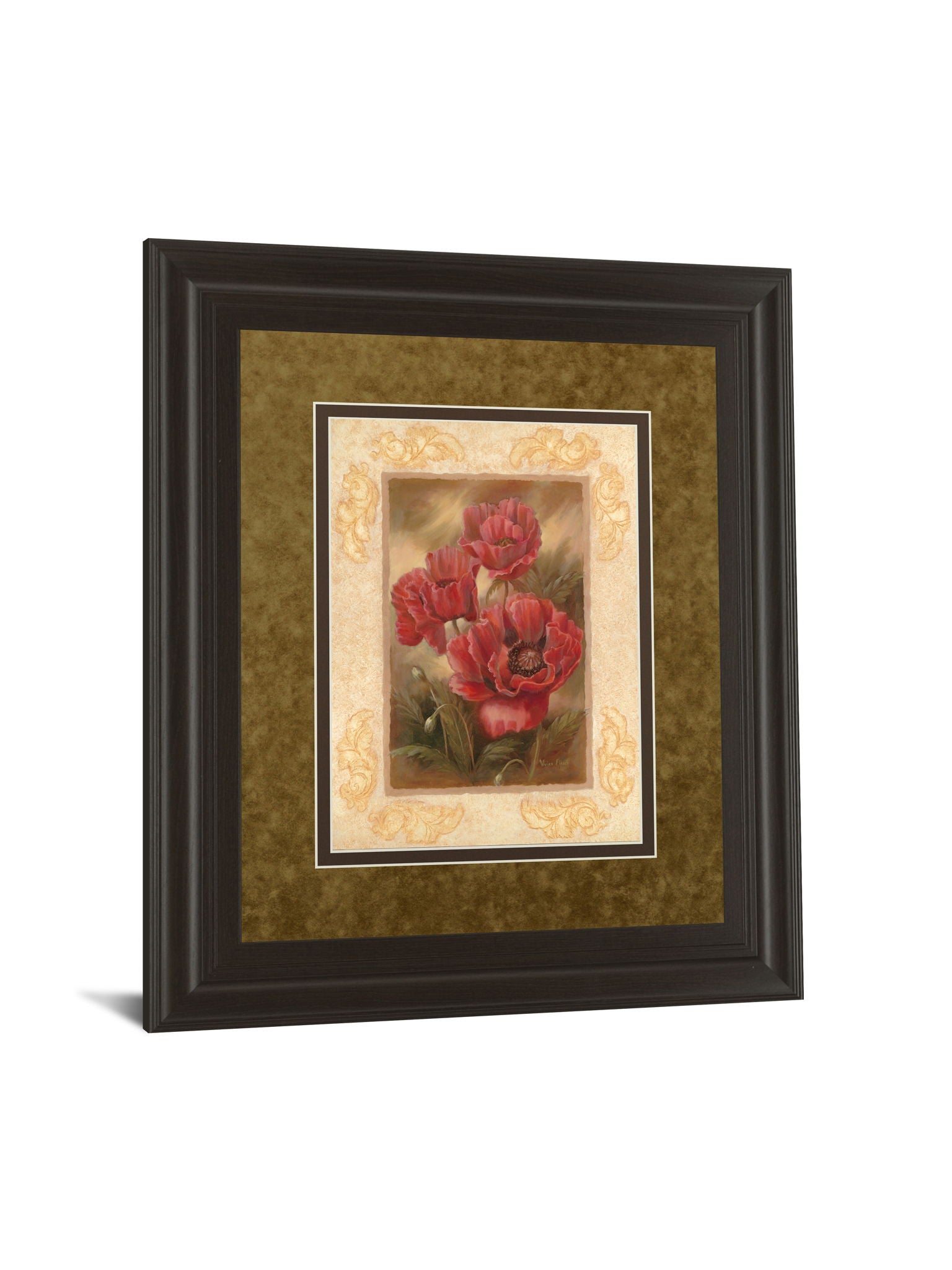 Daphne's Poppies invites you into a serene world where vibrant red poppies bloom with delicate grace against a soft, earthy backdrop. This transitional piece is thoughtfully designed with a richly textured double mat in warm browns and creams, framed by a dark chocolate finish that adds depth and sophistication. Enhanced by premium real glass, the artwork’s colors come alive while being protected, making it an elegant addition to any living room or office. Ready to hang with durable hardware, this botanical graphic art piece brings a timeless charm and natural elegance to your space, blending nature’s beauty with refined artistry.