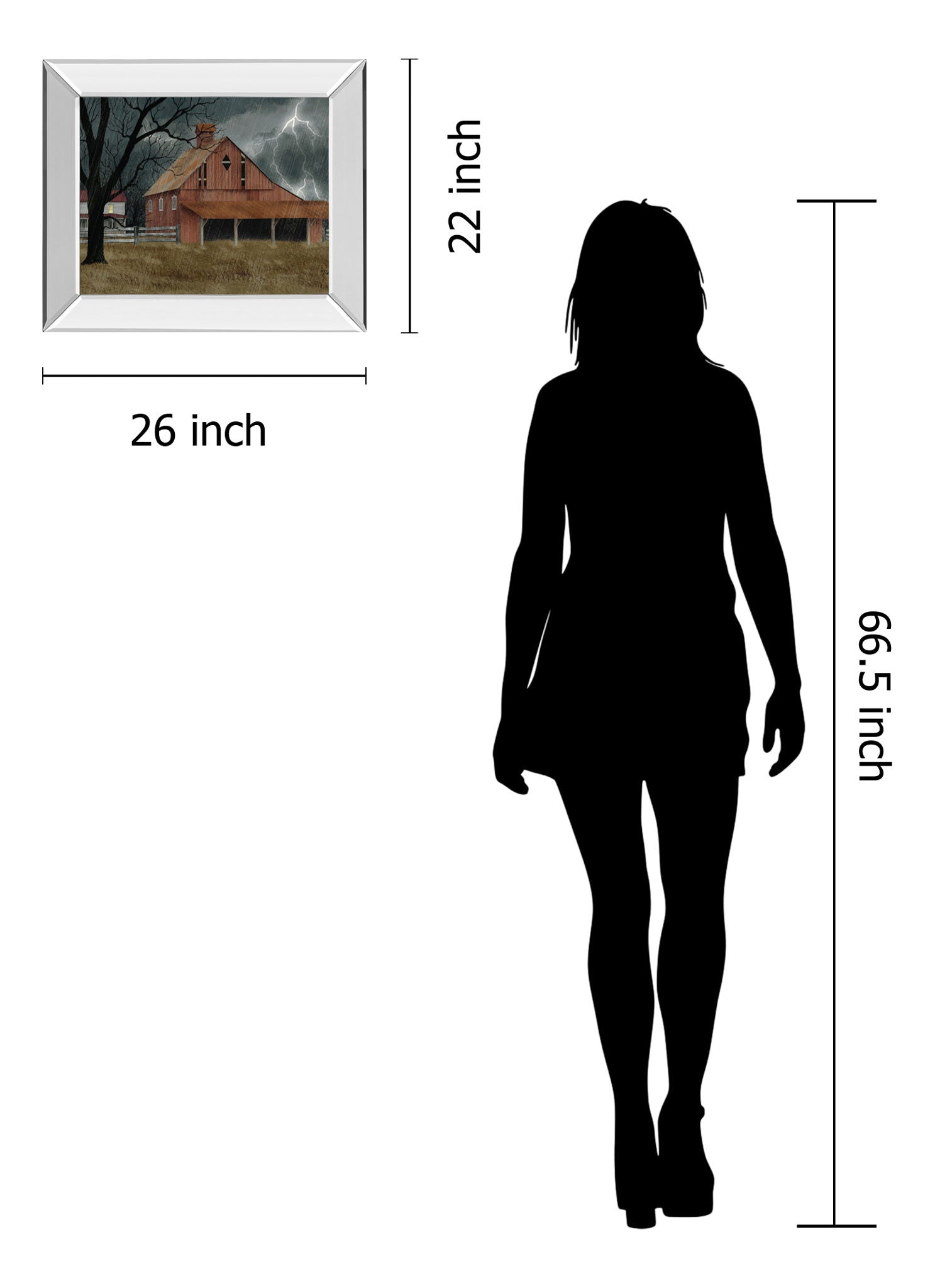 Step into the evocative world of a stormy countryside evening with this captivating framed wall art. The scene centers on a traditional red barn, its weathered wood glowing warmly against a backdrop of dark, rain-filled skies pierced by jagged lightning. A leafless tree in the foreground adds a haunting silhouette, while the mirrored frame reflects subtle light, enhancing the artwork's depth and drama. Perfect for spaces that crave a touch of rustic mystery and atmospheric charm, this piece invites you to experience the raw beauty and power of nature from the comfort of your home or office.